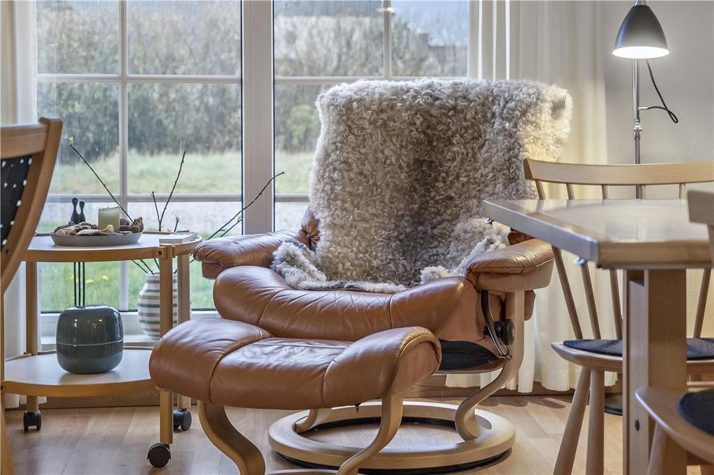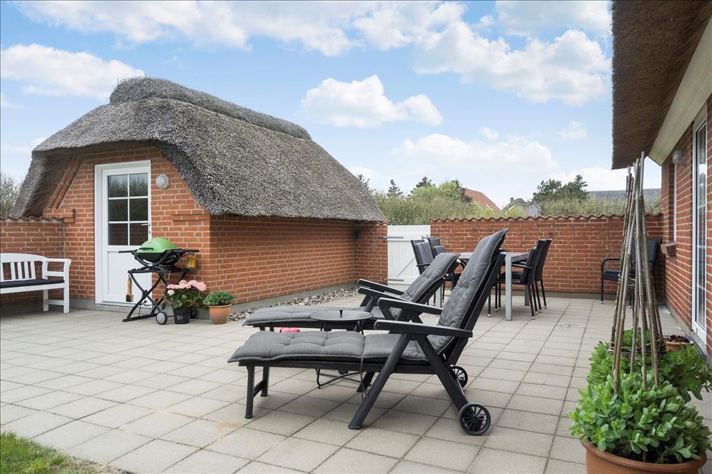Huset er omkranset af en stor grund som er perfekt til både boldspil og leg, og til familiens yngste er der opsat gynger som de kan hygge sig med. Den store sydvendte terrasse er afskåret fra omverdenen og er oplagt til solbadning da I får en dejlig masse privatliv. Smid bøfferne på grillen og hør dem stege imens fuglene synger og den lækre duft af mad spreder sig i luften.
