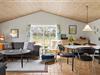 Flotte klinkegulve pryder huset og giver det en dejlig rumlighed. Det dejlige og godt udstyrede køkken ligger i åben forbindelse med både opholdsstue og spiseafdeling som gør det muligt for jer at nyde hinandens selskab på trods af at I laver forskellige ting. Trænger I til en afslappende stund så tænd op i det dejlige spabad og nyd de varme bobler der virker afslappende inden I sætter jer ind i den dejlige sauna. På de kølige sommeraftner kan I med fordel tænde op for den dejlige brændeovn, og nyde den dejlige varme og den hyggelige knitrende lyd der spreder sig.