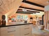 Når I træder ind i dette charmerende feriehus, bliver I mødt af en fantastisk stue der emmer af afslapning og ro, her kan I nyde den gode udsigt ud gennem de store vinduer. Sæt jer ved det store spisebord med de charmerende stole der giver stuen et farverigt pust. Køkkenet ligger i åben forbindelse med spiseafdeling og opholdsstue, så her kan I rigtigt nyde feriens afslappende atmosfære, og glem ikke at tænde op for den dejlige brændeovn og nyde dens dejlige varme og hyggelige knitrende lyd. Husets træbeklædte vægge og lofter giver huset en dejlige landlig charme som man kun kan holde af. Det dejlige anneks gør det også muligt for jer at trække jer tilbage og nyde en rolig stund i fred og ro på en af de to skønne værelser. Når I trænger til komplet afslapning, kan I tænde op i den dejlige spa, der giver både varme og ro. Huset er perfekt til 2 familier, eller hvis I har større børn med.