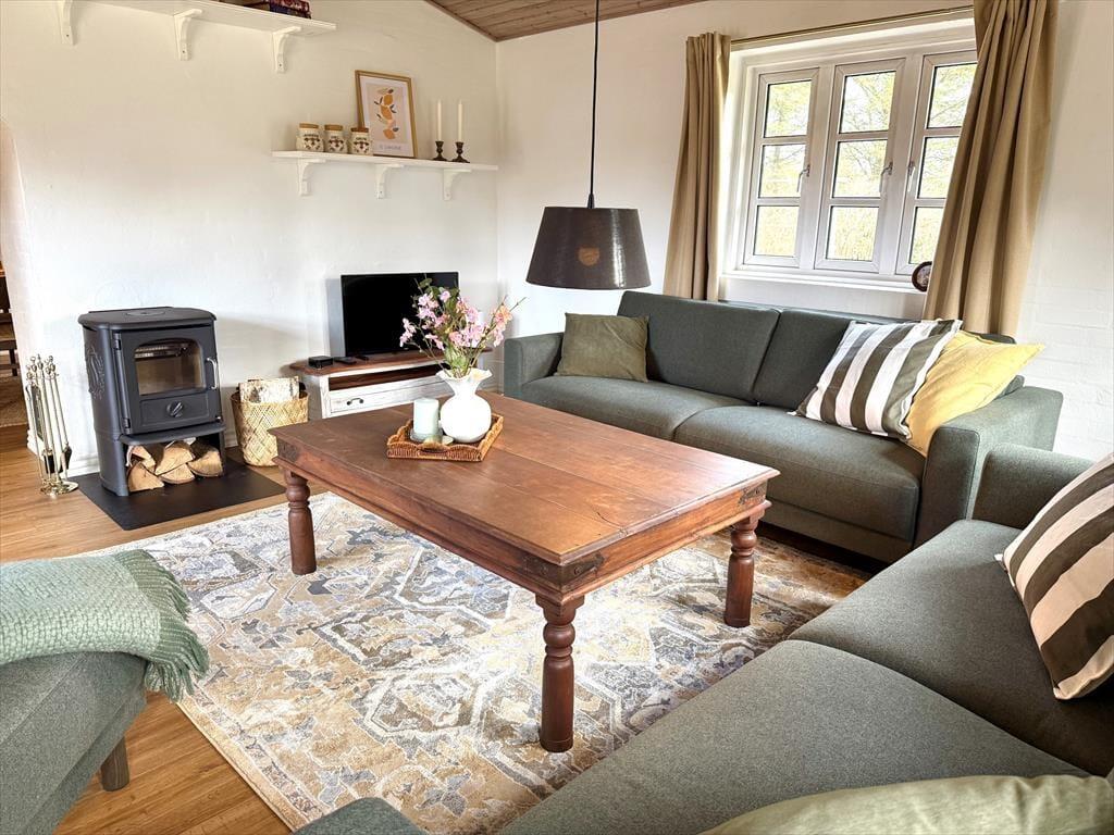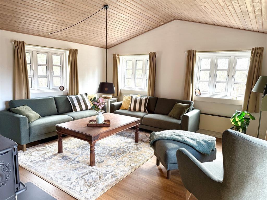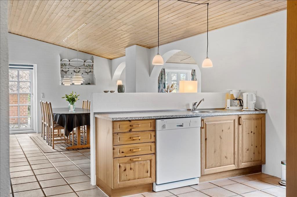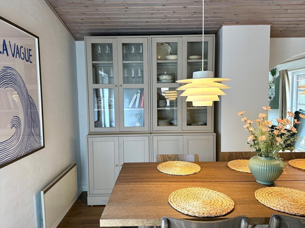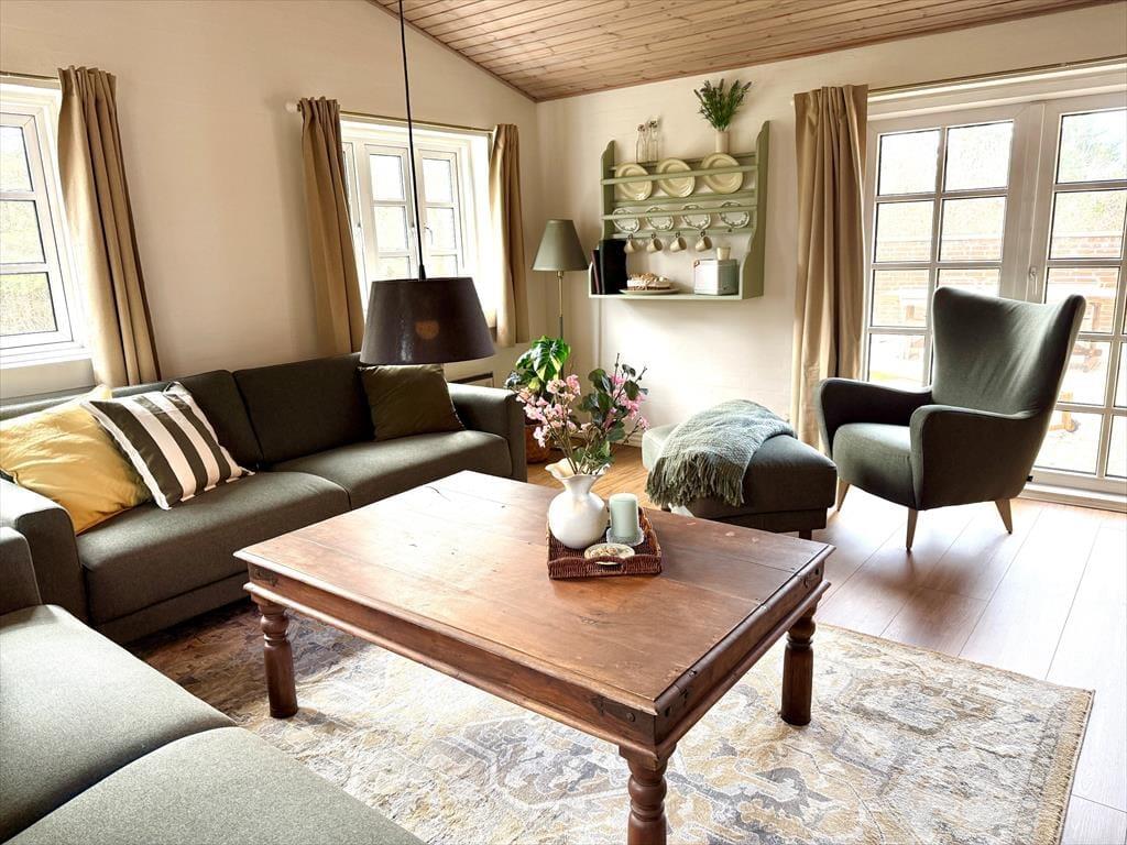 Træd ind i dette skønne og funktionelt indrettede feriehus hvor der er plads til hele familien og selvfølgelig også menneskes bedste ven. Det store og godt udstyrede køkken ligger i åben forbindelse med både opholdsstue og spiseafdeling, så her har I rig mulighed for at være sammen og holde samtalen kørende på trods af at I laver forskellige ting. Hvis I en dag har lyst til en lille spa oplevelse så tænd op for den dejlige spa og nyd dens varme bobler der blidt omfavner jer, efterfølgende kan I passende nyde en afslappende stund i den dejlige sauna.
