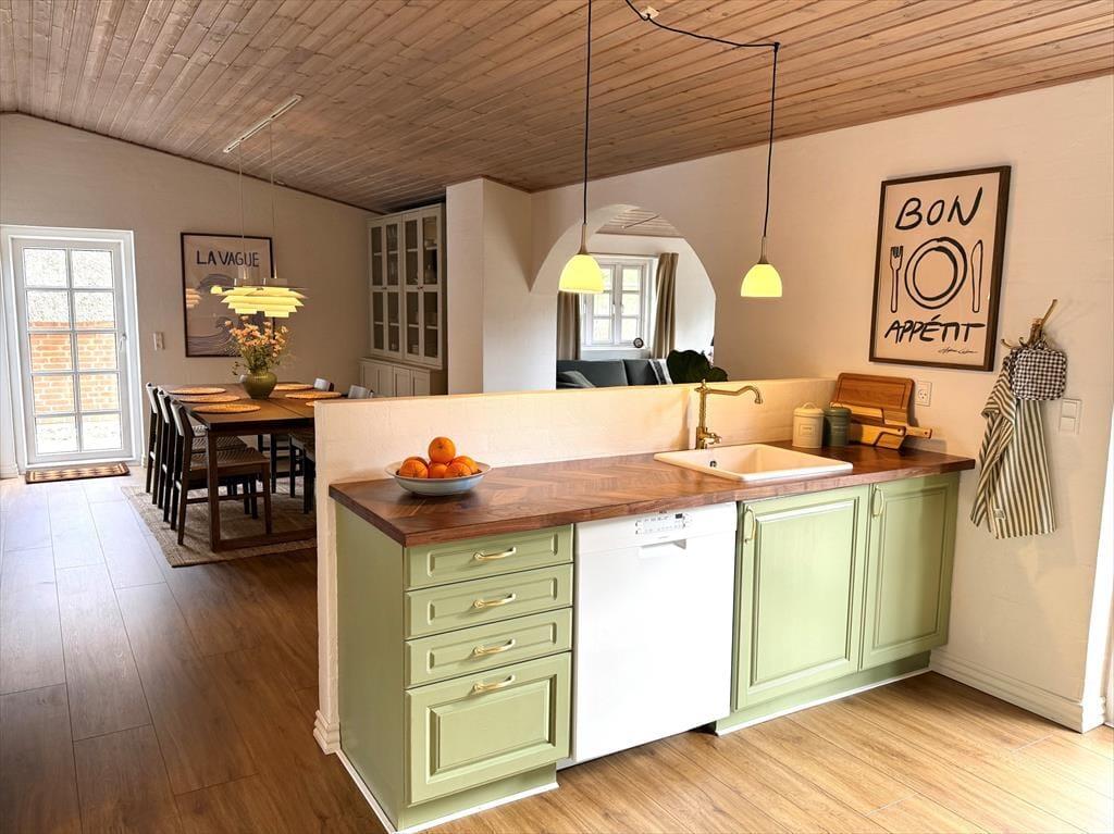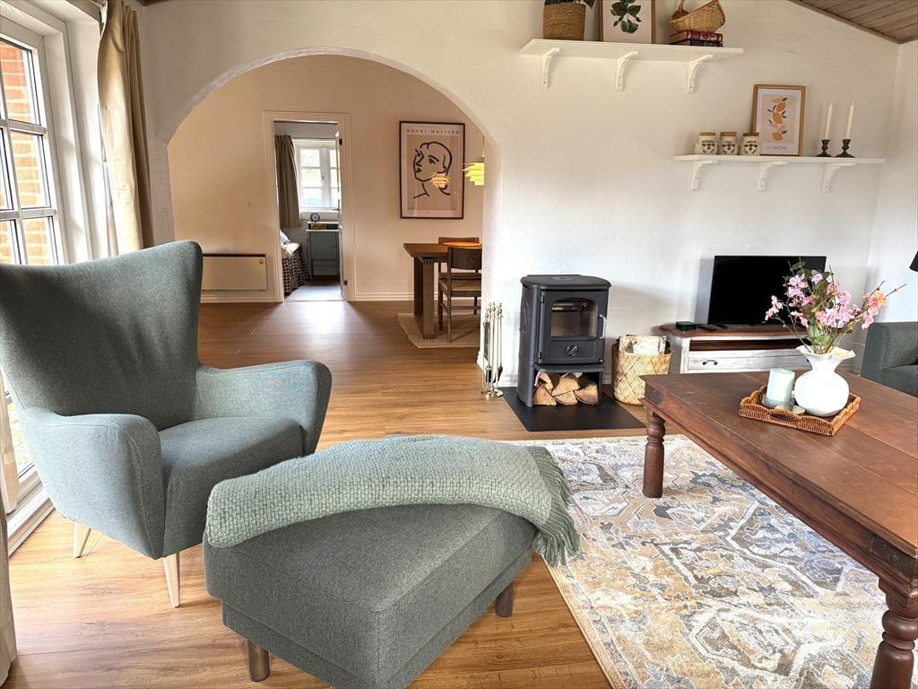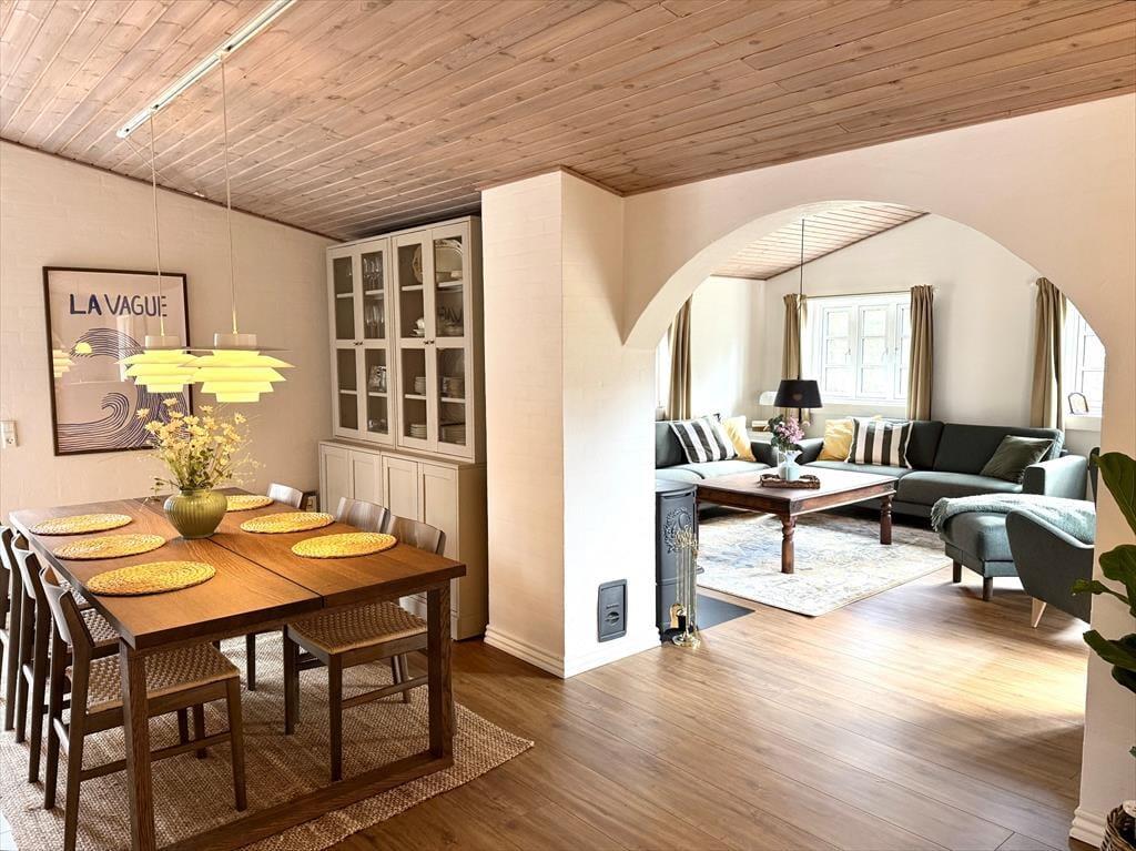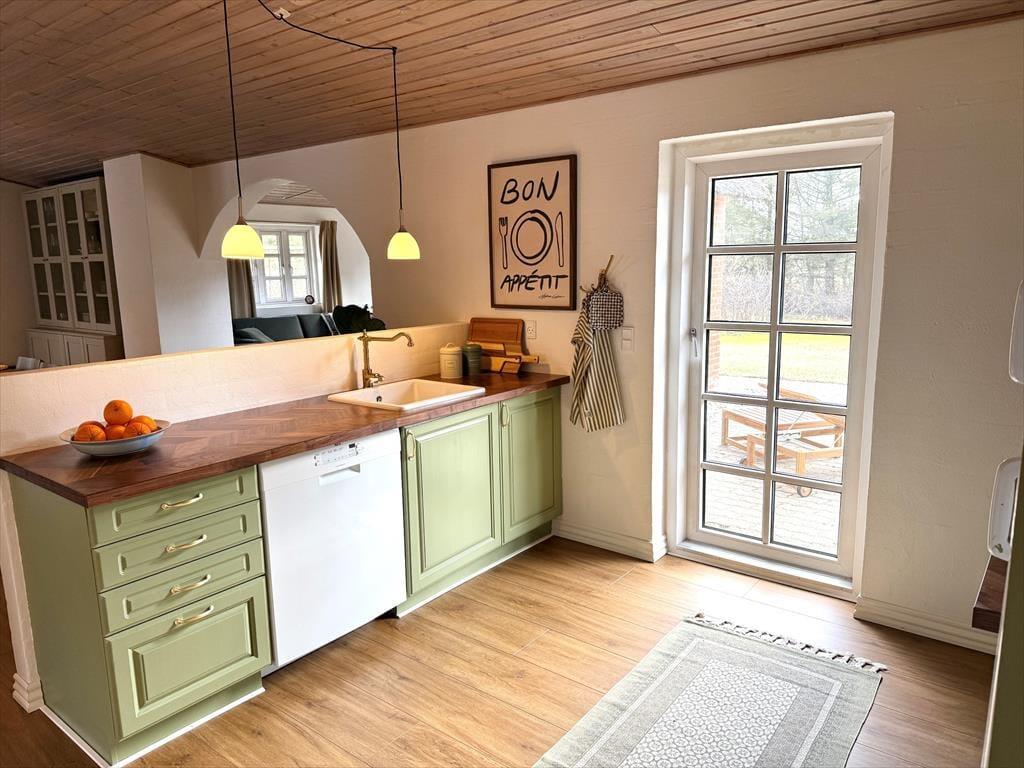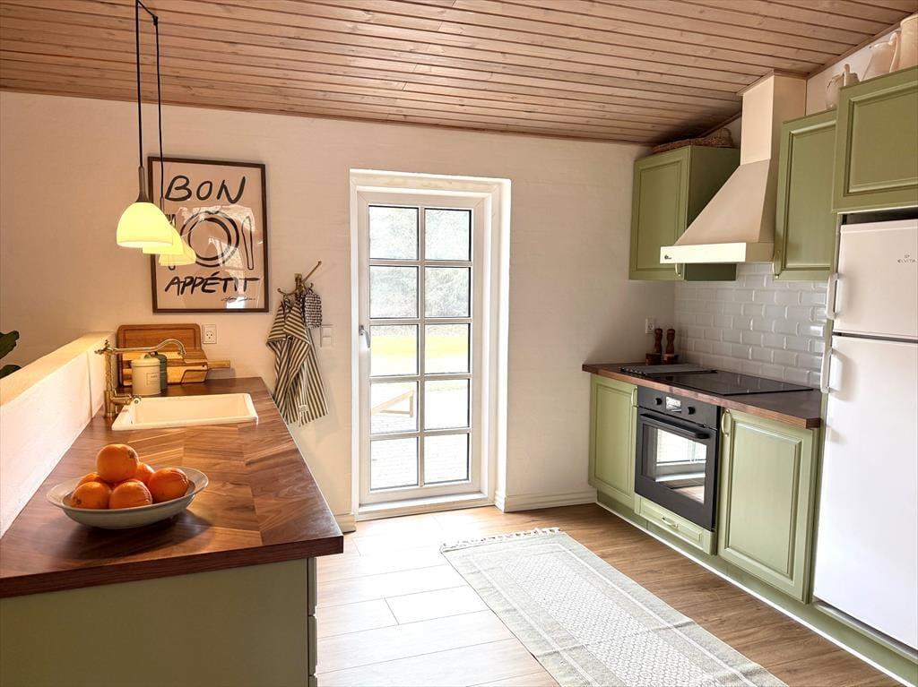 Træd ind i dette skønne og funktionelt indrettede feriehus hvor der er plads til hele familien og selvfølgelig også menneskes bedste ven. Det store og godt udstyrede køkken ligger i åben forbindelse med både opholdsstue og spiseafdeling, så her har I rig mulighed for at være sammen og holde samtalen kørende på trods af at I laver forskellige ting. Hvis I en dag har lyst til en lille spa oplevelse så tænd op for den dejlige spa og nyd dens varme bobler der blidt omfavner jer, efterfølgende kan I passende nyde en afslappende stund i den dejlige sauna.
