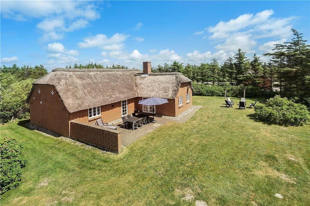 Huset er dejligt beliggende i et skønt og eftertragtet feriehusområde tæt på Vesterhavet og klitterne, nemlig i Vedersø Klit. Det skønne hus er bygget ud fra bestemte regler der blev fastlagt tilbage i 30’erne, og derfor vil I se mange af samme stil i området. Fra feriehuset skal I blot gå 700 meter for at komme til det vilde og vindblæste Vesterhav, her kan I nyde det klare blå vand eller solbade på stranden og få en smuk sommerlig kulør, men husk solcremen solen kan også være ubarmhjertig.