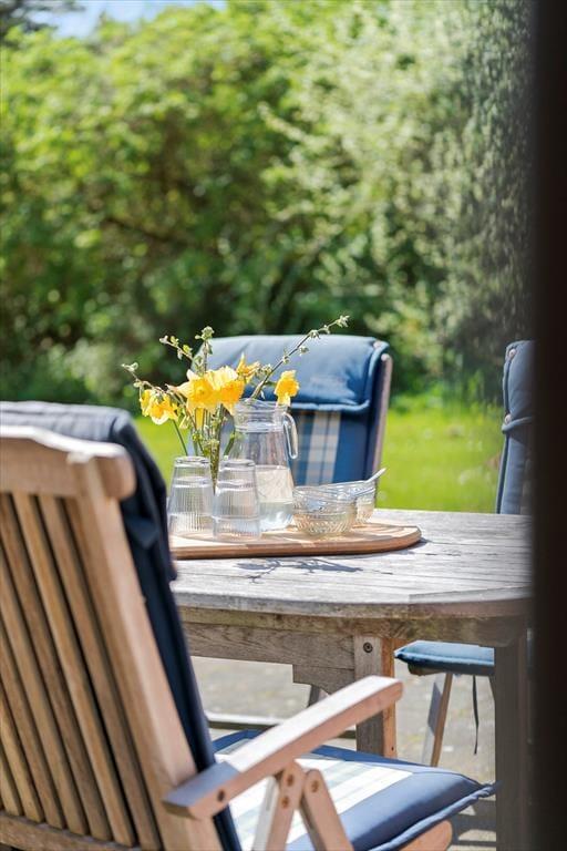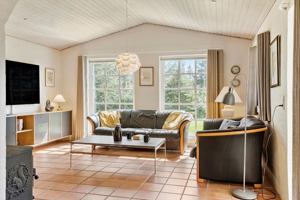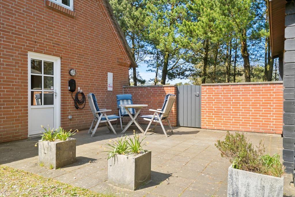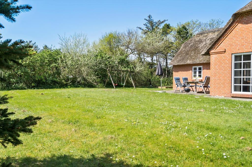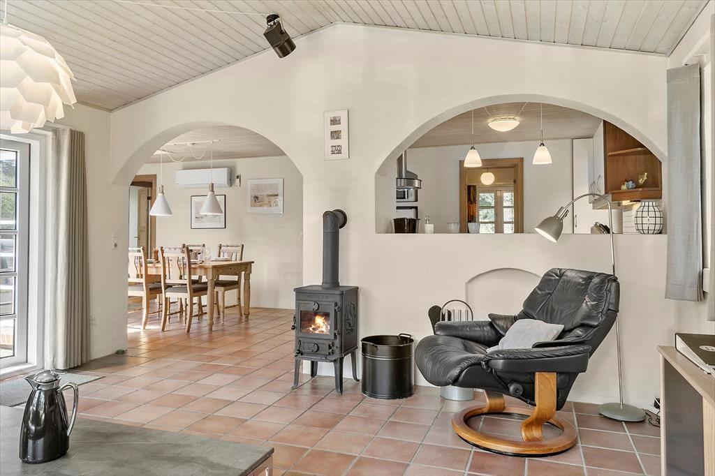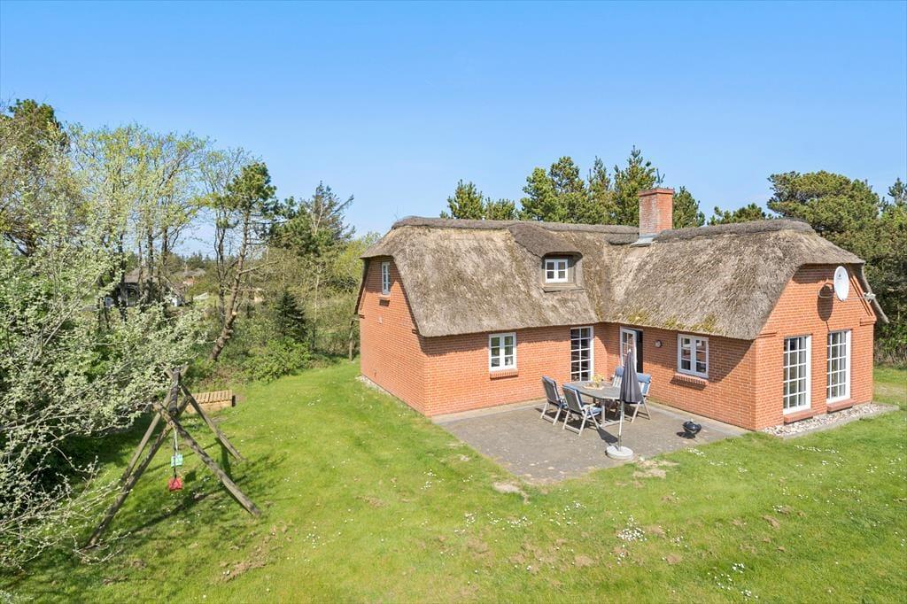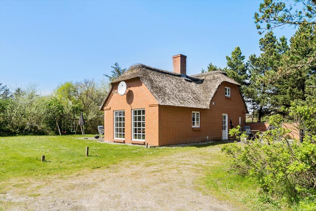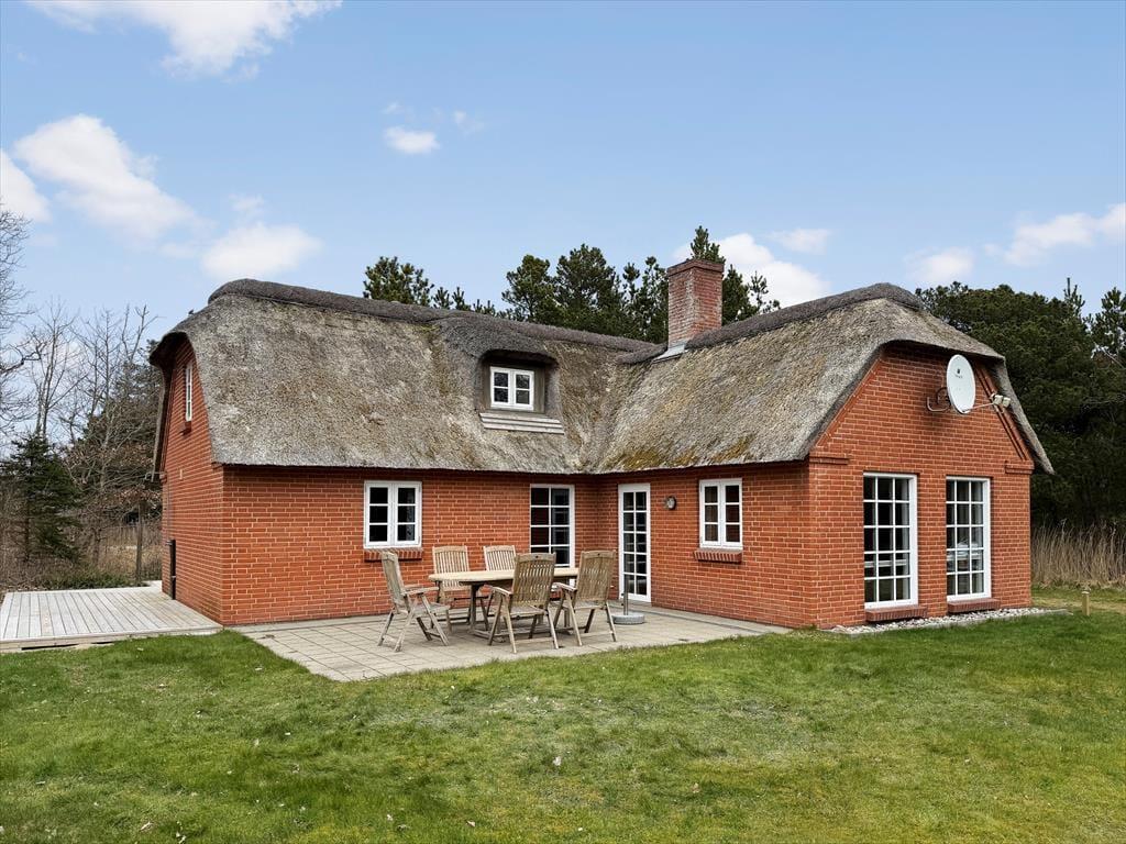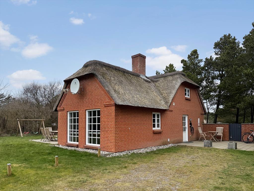 Sommerhus i Vedersø Klit Strand, Vestjylland, med plads til 6 voksne. Der er en hyggelig indretning med bl.a. brændeovn, og du finder desuden vaskemaskine, opvaskemaskine og tørretumbler i boligen.