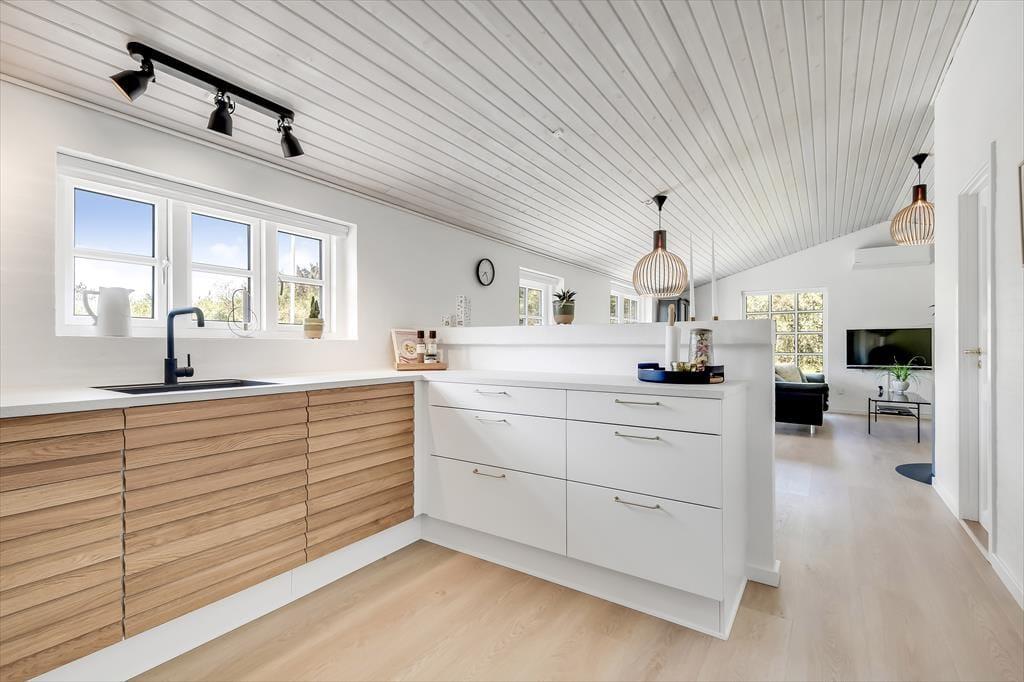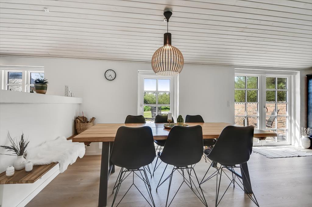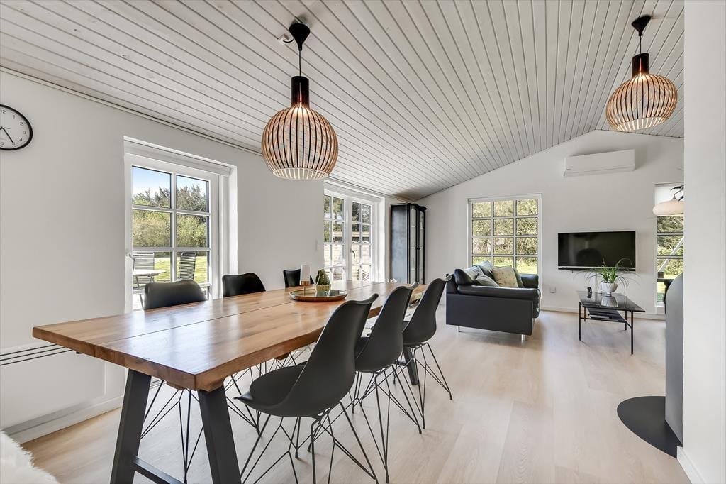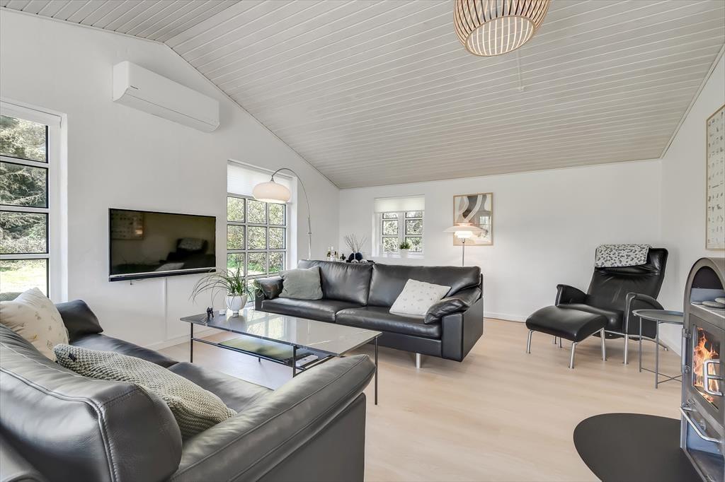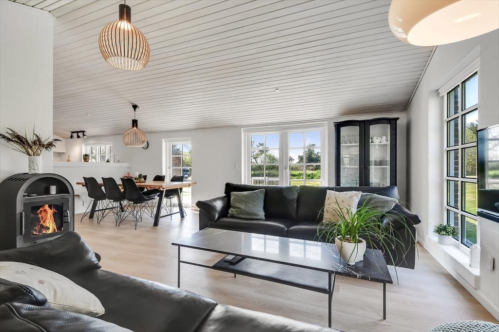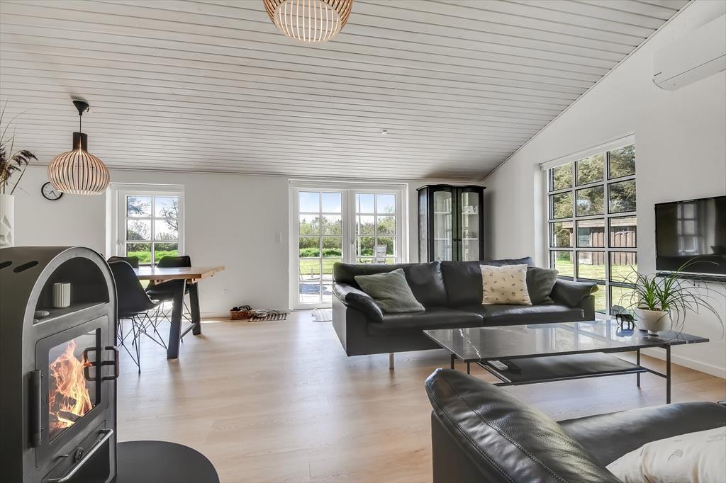 Når I træder ind i dette skønne feriehus, vil den rummelige og lyse indretning straks få skuldrene til at sænke sig. Her er plads til både afslapning og hyggelige stunder med dem, I holder af.