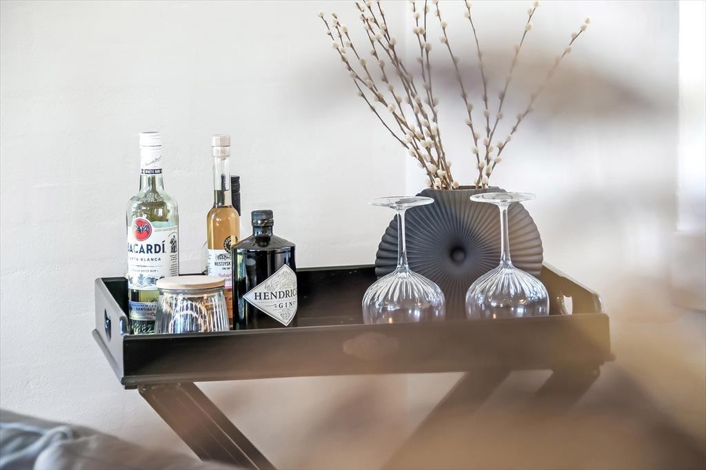 Mens aftensmaden tilberedes i ovnen, spreder duften sig fra køkkenet og ud i stuen, hvor brændeovnen knitrer og skaber en varm og indbydende atmosfære. Sæt jer godt til rette, nyd varmen og lad roen sænke sig.