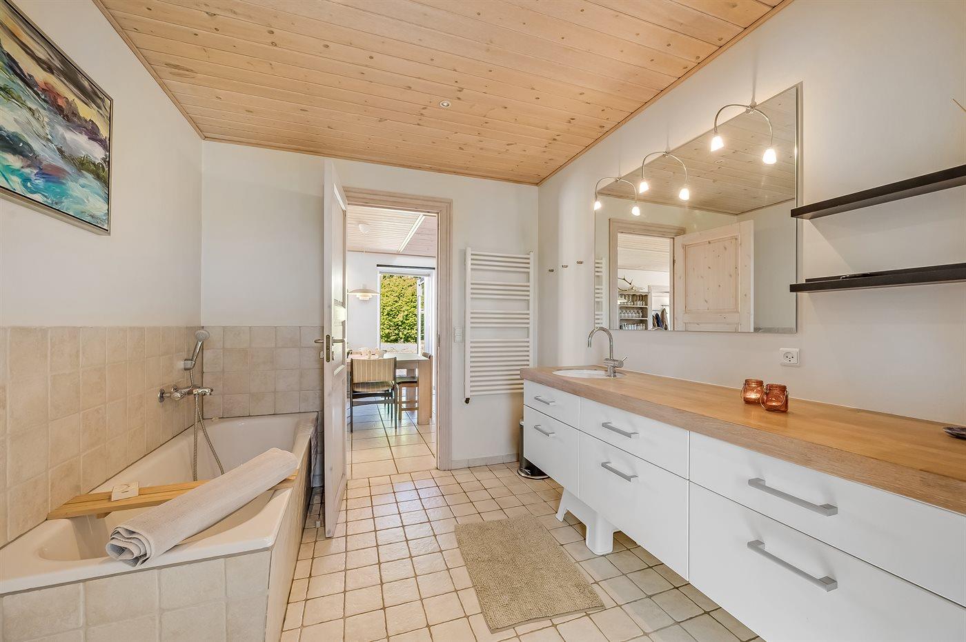 Der er 2 badeværelser med bruseniche og 2 toiletter. Badekar.