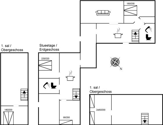 Der er i alt 5 soveværelser. Sovepladserne fordeler sig på: 6 sovepladser i dobbeltsenge. 4 sovepladser i enkeltsenge. 2 sovepladser i køjeseng.