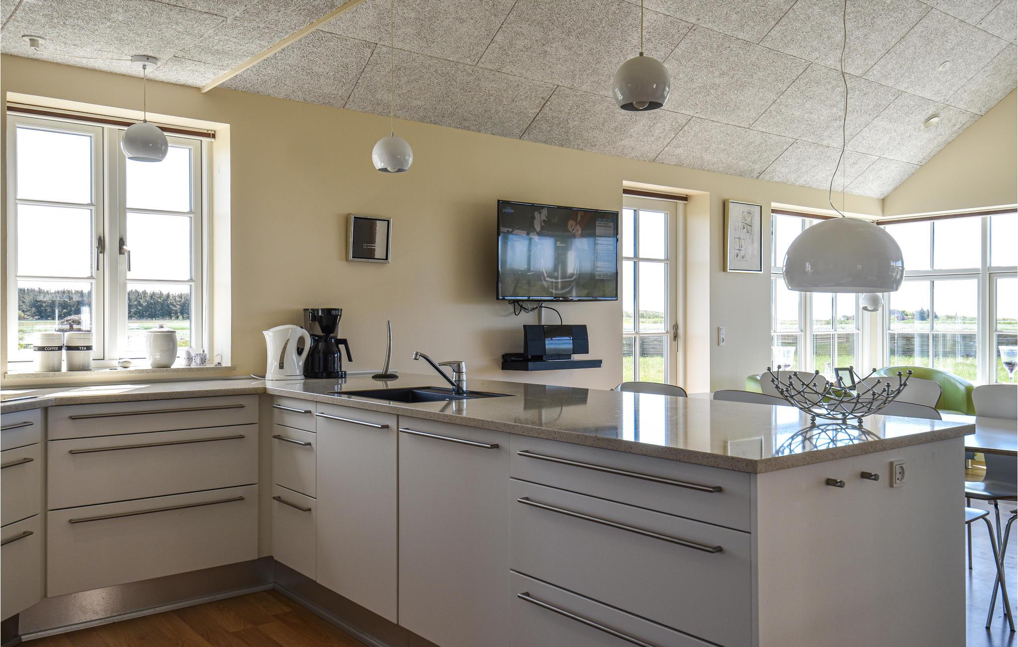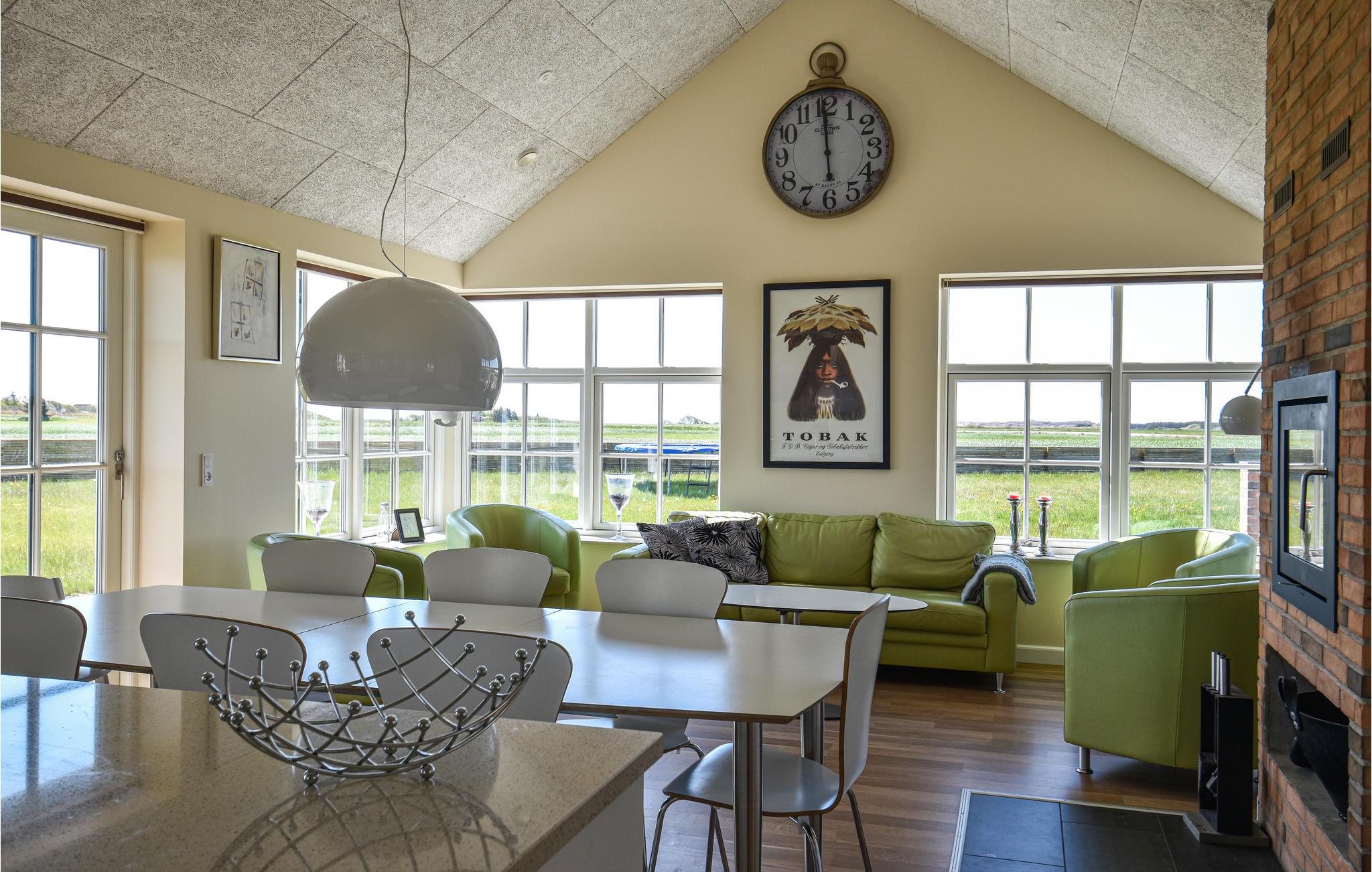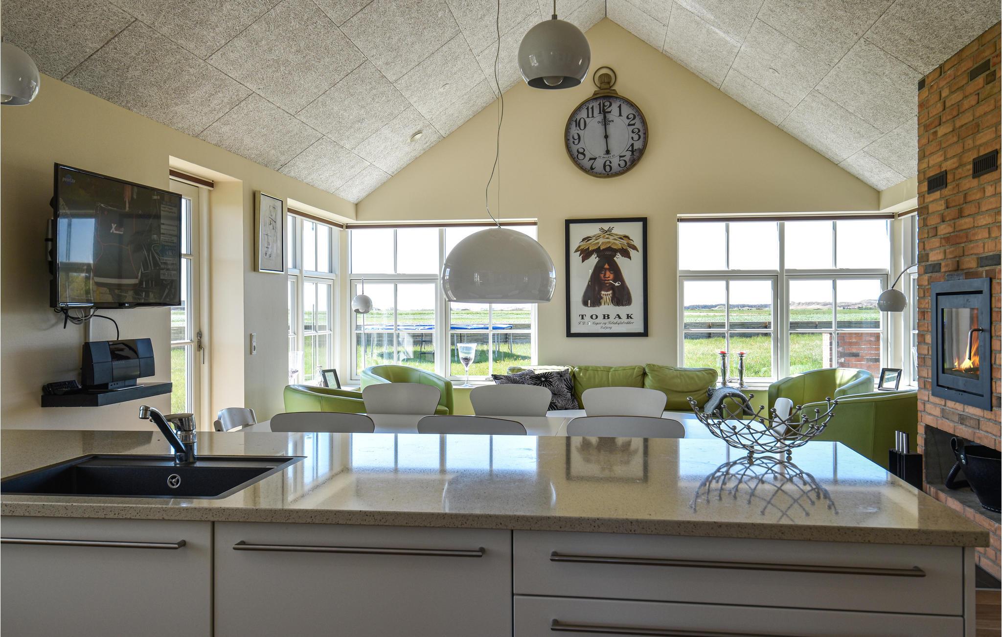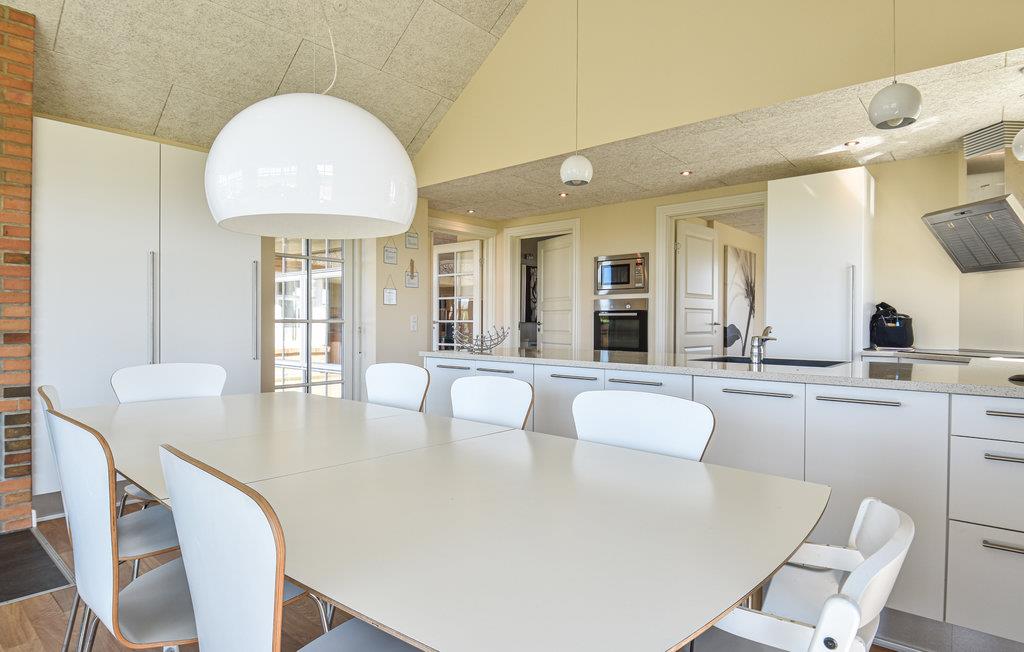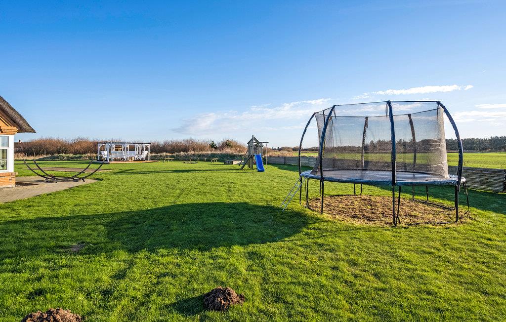 Stråtækt idyl på over 200 m² beliggende med en dejlig udsigt over engene i Vedersø. Huset indeholder alt, hvad I kan ønske jer til en dejlig ferie. Her findes bl.a. et åbent køkken i forbindelse med stuen, der har adgang til terrassen. Et aktivitetsrum, hvor I bl.a. kan hygge jer med et spil pool. Desuden to store badeværelser, hvoraf det ene indeholder spabad og sauna, der adgang til terrassen hvor der står et 6 personers standvands spabad, som kan bruges hele året. Hertil kommer fire store soveværelser.