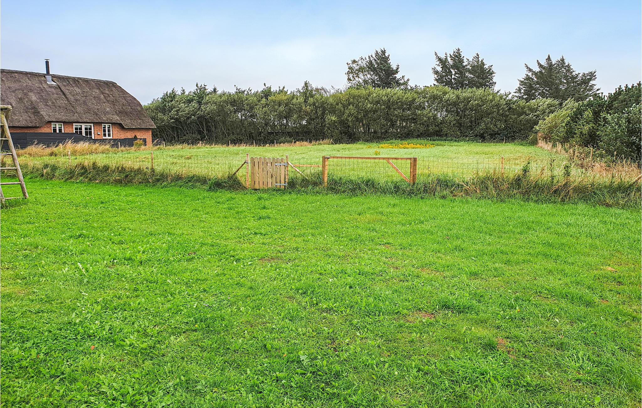 Hyggeligt stråtækt sommerhus i Vedersø Klit med stort indhegnet område og wellness-faciliteter.