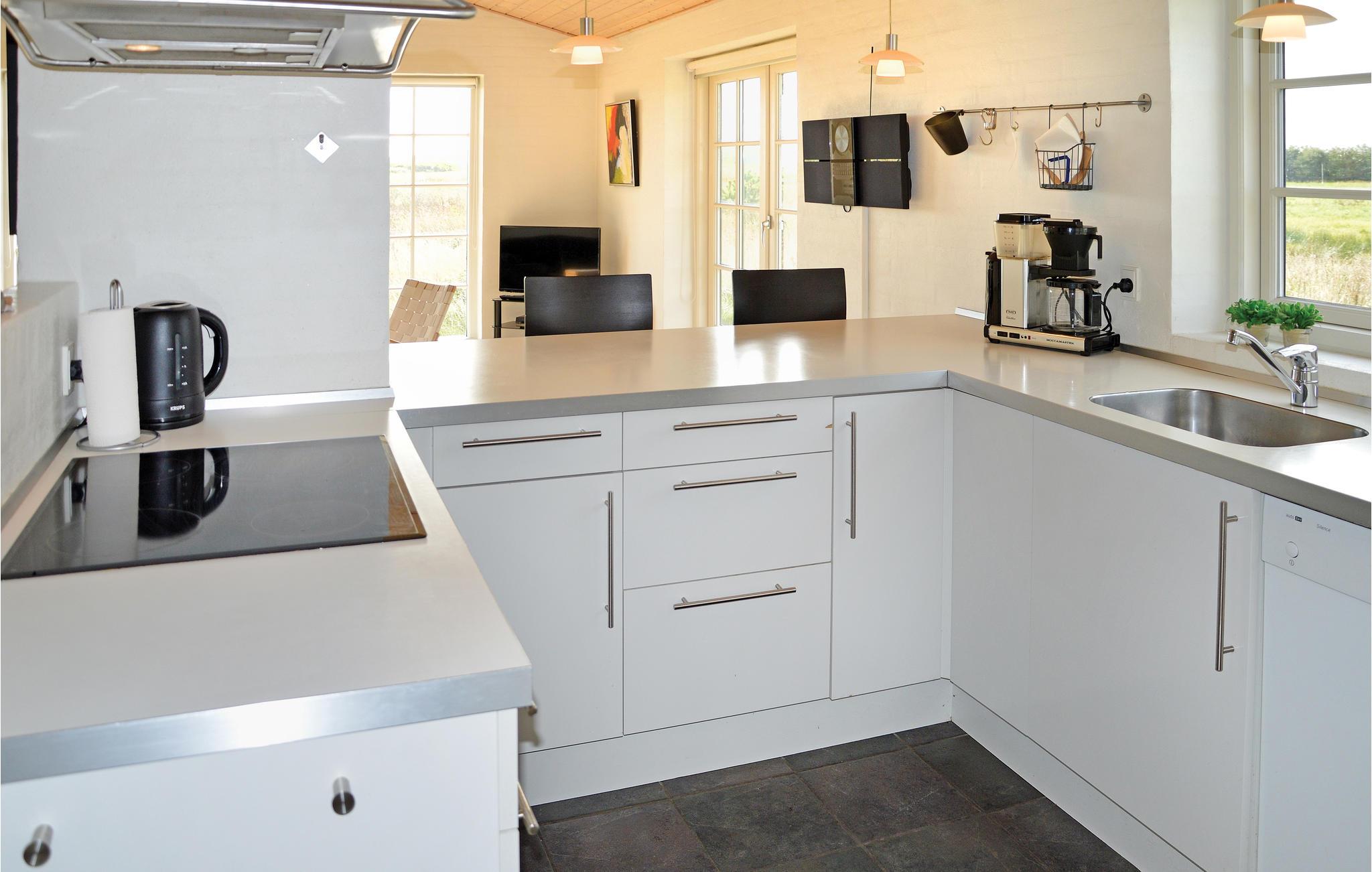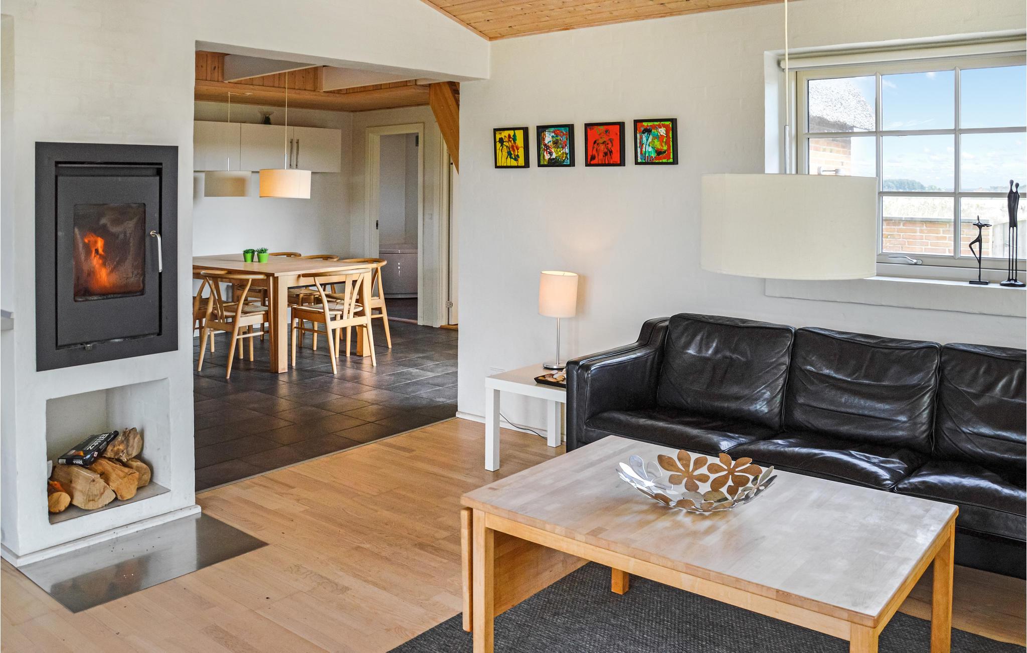 I et dejlig naturrigt område ligger dette hyggelige feriehus. Huset er pænt indrettet med kombineret stue/ køkken med brændeovn og adgang til husets terrasse, fire soveværelser samt badeværelse med både spa og sauna. Husets beliggenhed er ideel, hvis I søger rolige omgivelser med højt til himlen og masser af natur. Indenfor kort afstand finder I det unikke, og til tider brusende Vesterhav, som bestemt er et besøg værd, uanset om I kommer i januar eller juli. Området byder på store klitplantager, masser af marehalm og klitroser. I vådområderne ved Vest Stadil Fjord og Nissum Fjord ses et rigt fugleliv – specielt om for- og efteråret kan I opleve store mængder af ænder, vildgæs, svaner og rørhøge. Hele omegnen er anlagt med mange kilometers cykel- og vandrestier. Fra feriehuset har I knap 20 km til både Thorsminde og Søndervig. Thorsminde er flot beliggende mellem Vesterhavet og Nissum Fjord. Byen er en lille fiskerby med knap 400 indbyggere, og her finder I bl.a. Strandingsmuseet Sct. George, indkøbsmuligheder m.m. Her er desuden fine muligheder for at fiske fra molen, og er heldet ikke med jer, kan friske fisk købes på havnen. Søndervig er stedet, hvor der i sommerhalvåret summer af liv og aktiviteter, og hvor I bl.a. finder mange specialforretninger, spisesteder, legepladser og minigolf.