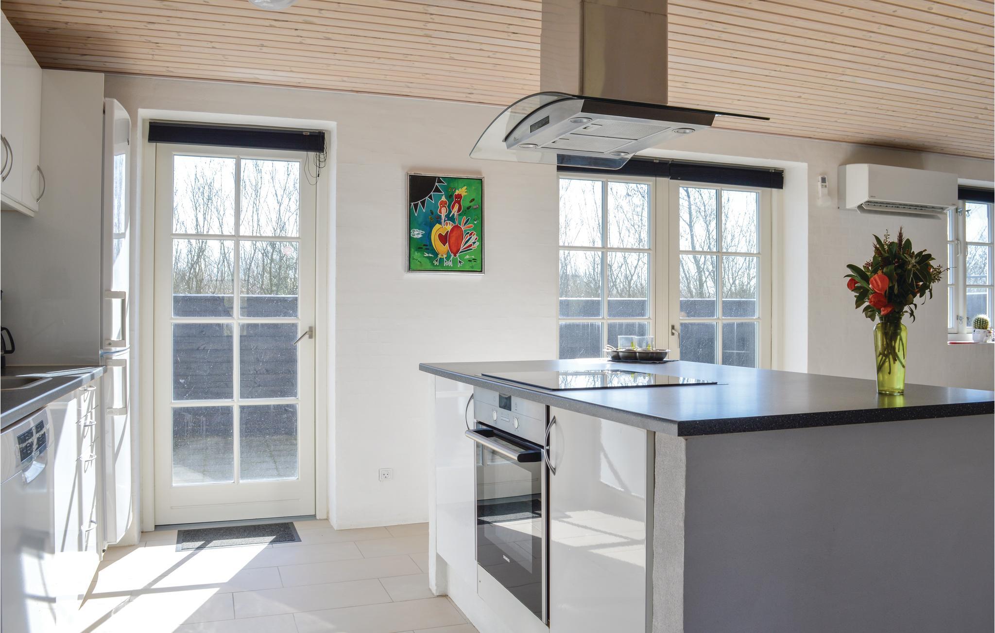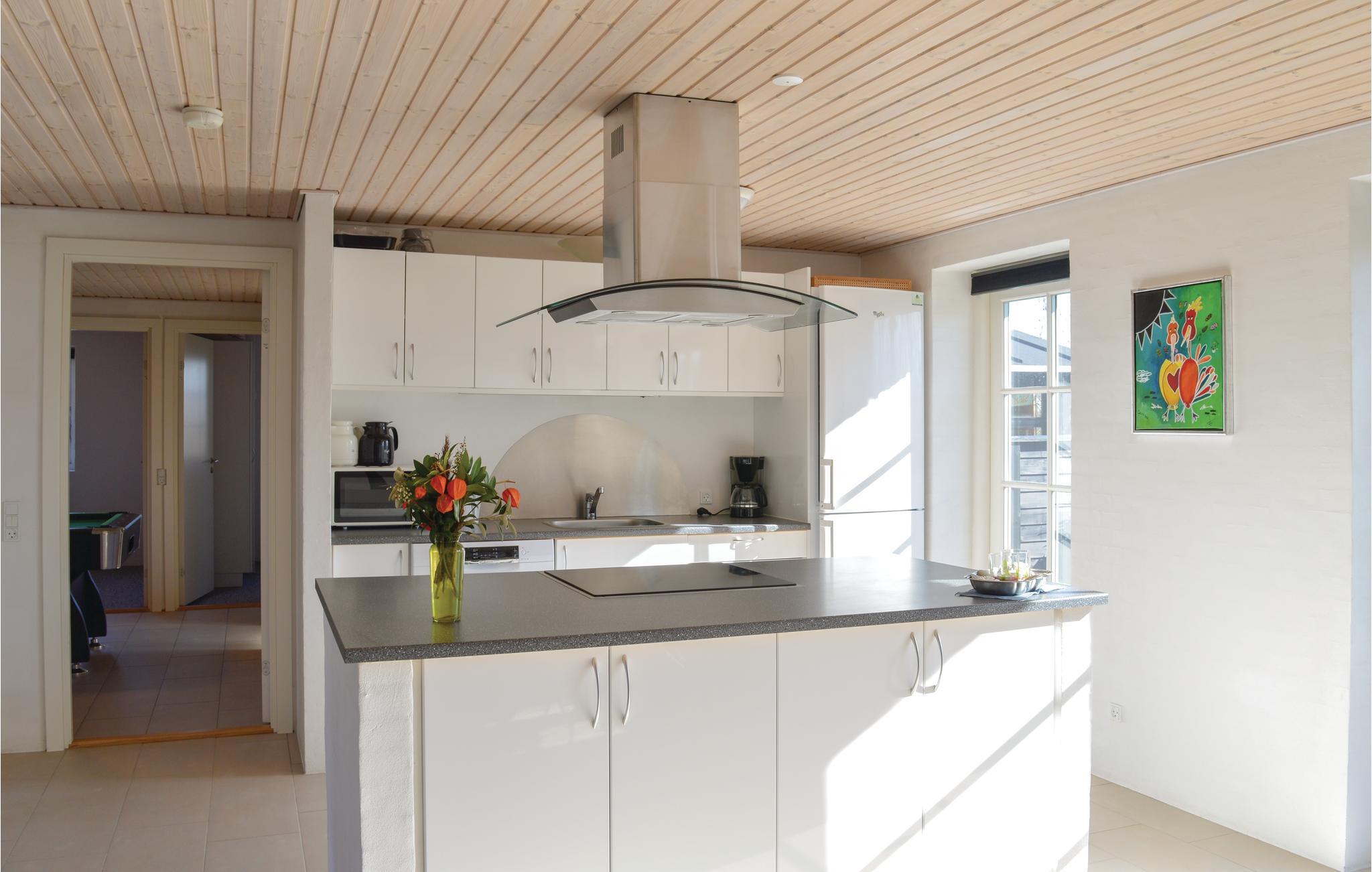 Nyd en afslappende ferie i jeres rummelige sommerhus midt i et skønt naturområde. De idylliske omgivelser byder på masser af ro og talrige muligheder for udendørsaktiviteter. Find jer godt til rette i jeres moderne hus i den rummelige opholdsstue med de komfortable sofaer eller nyd måltider sammen ved det store spisebord. Det åbne køkken lægger op til at lave mad sammen. Slap af og slap af i husets spabad. Et andet højdepunkt er aktivitetsrummet med billard/billardbord, som sikrer hyggestunder.