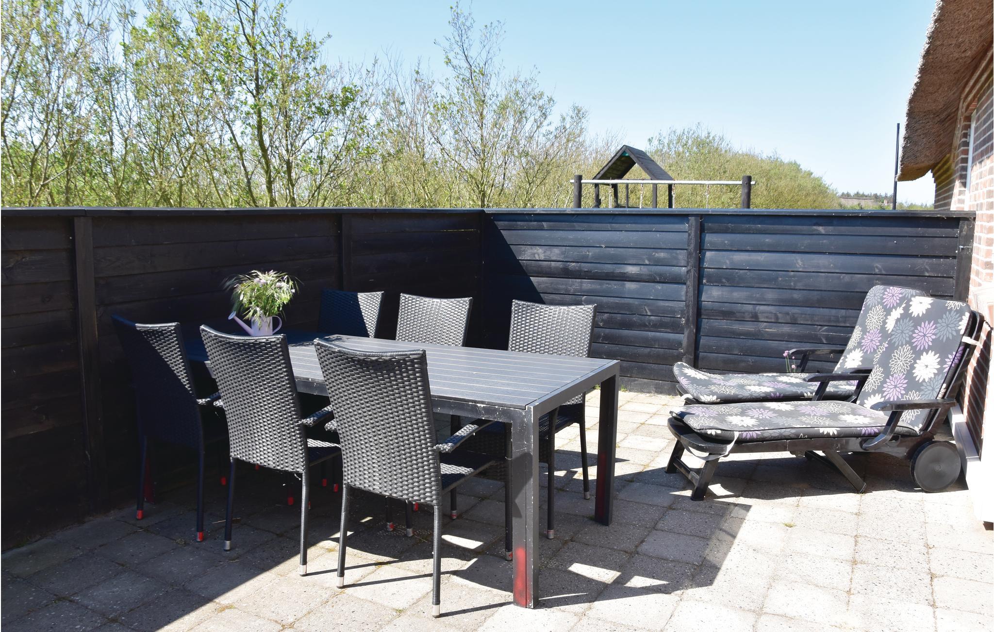 Udnyt den rummelige ejendom med en indhegnet terrasse, der giver jer masser af bevægelsesfrihed. Slap af på havemøblerne eller nyd hyggelige aftener med et grillmåltid. Gynger, en rutschebane, et klatrehus og en sandkasse er til rådighed for yngre gæster.