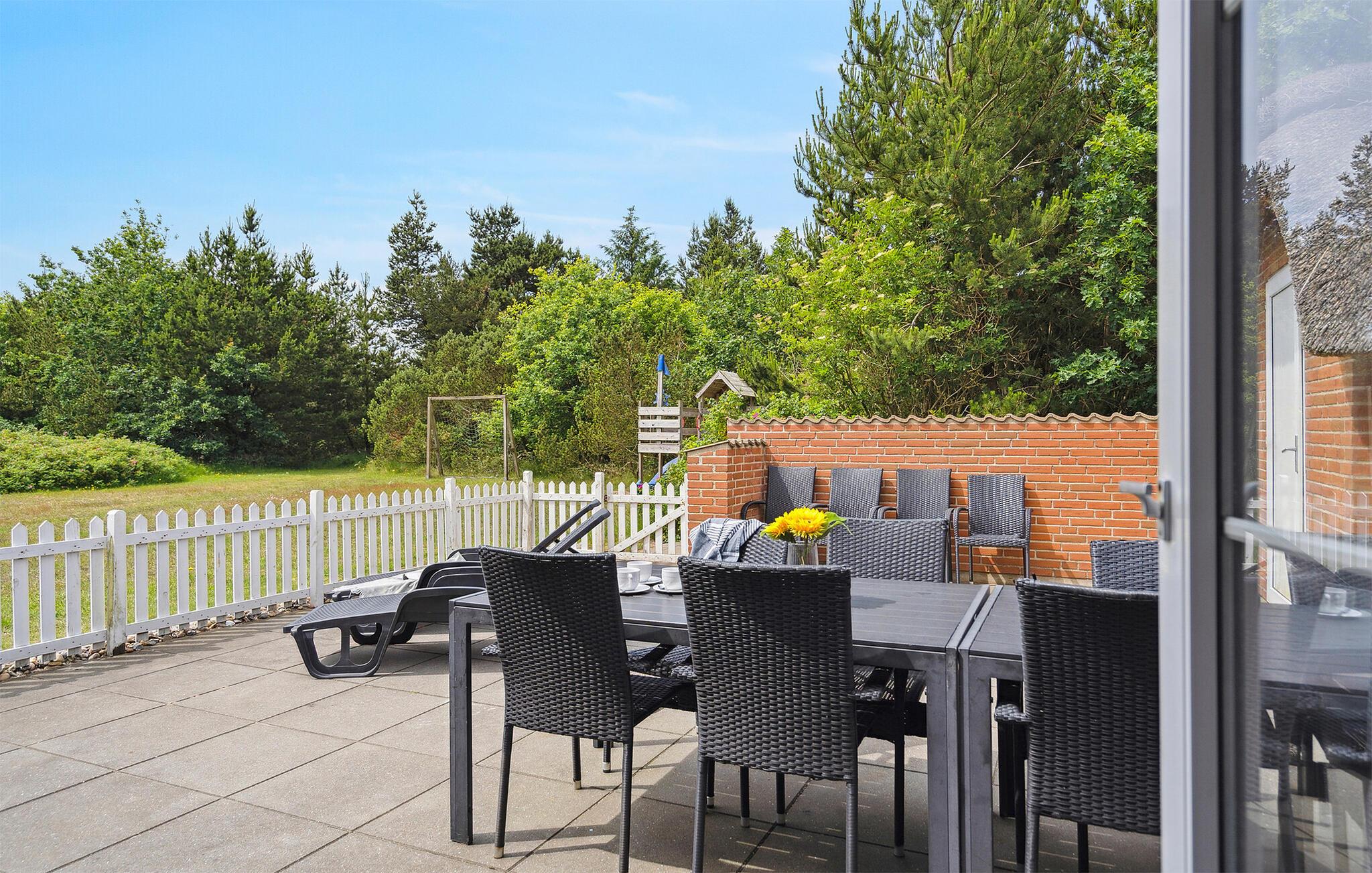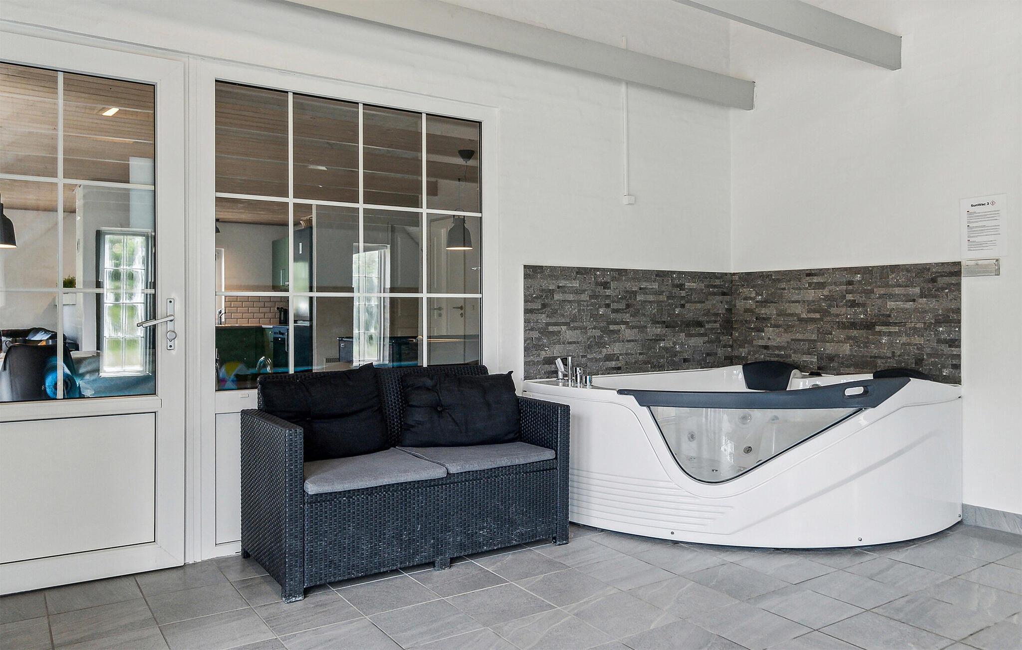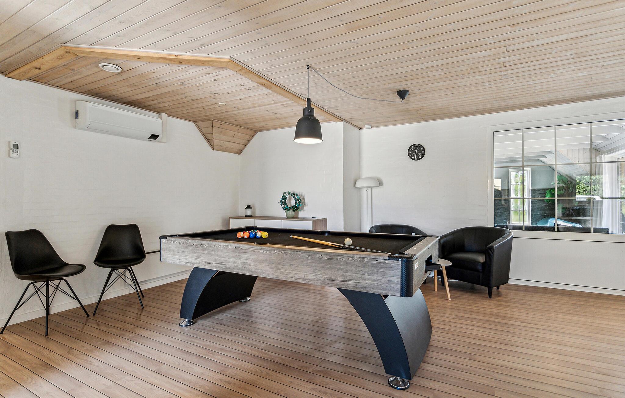 Velkommen til dette moderne, lyse feriehus. Her kan I tilbringe en dejlig tid med familie eller venner. Fantastiske ekstrafaciliteter som swimmingpool, jacuzzi og poolbord giver jer mulighed for at holde en rigtig luksusferie. Børn og firbenede familiemedlemmer kan boltre sig i haven og slå sig løs på legeredskaberne. Imens kan de voksne slappe af på terrassen med en kølig drink og nyde solens stråler. I kan også bruge husets sauna til at slappe af og komme helt ned i gear efter en dag fyldt med eventyr og oplevelser.