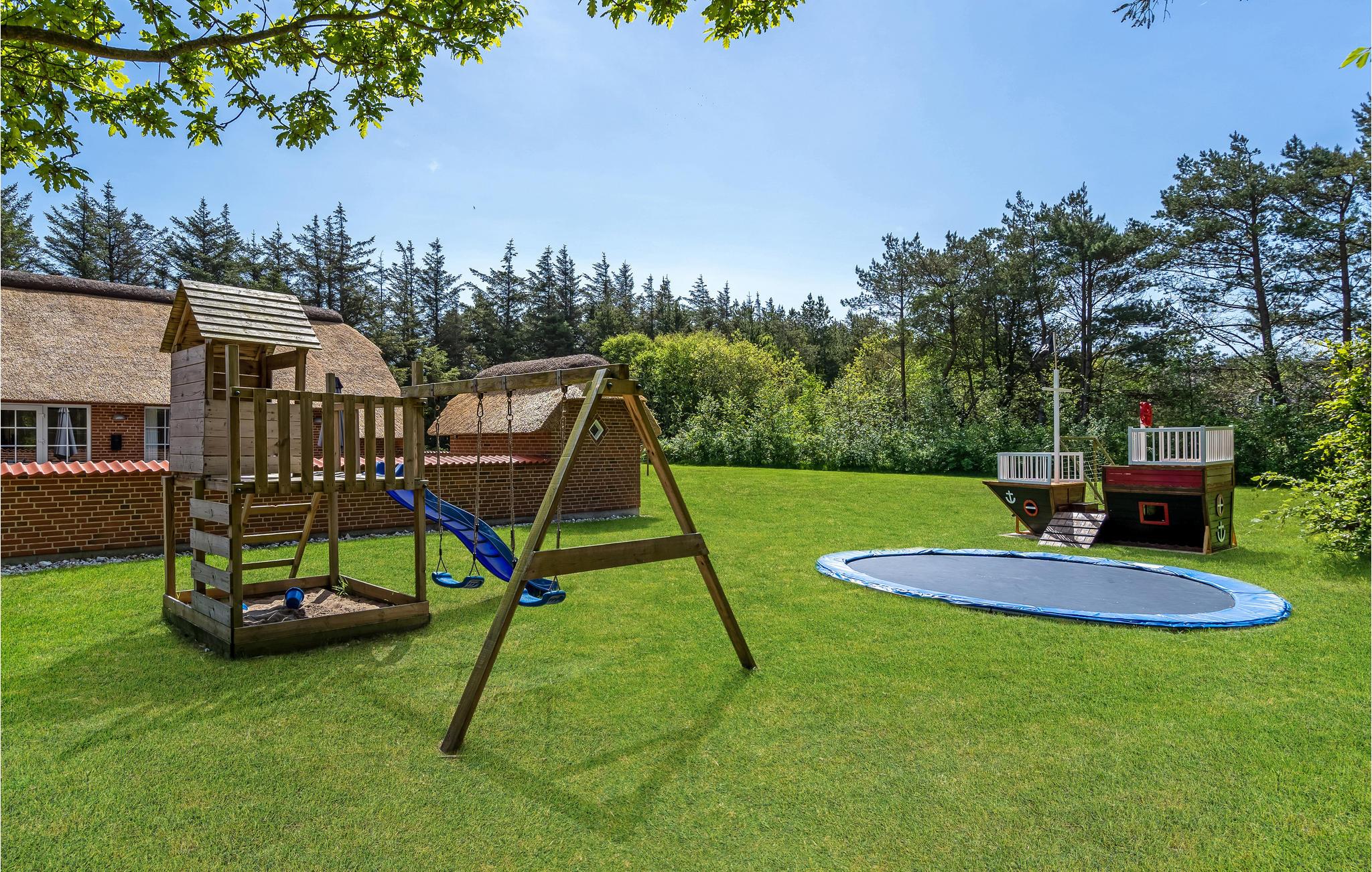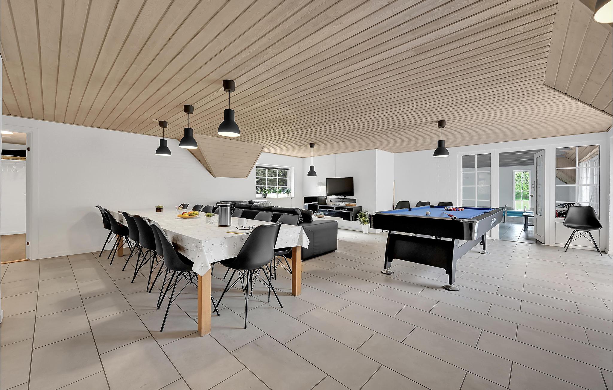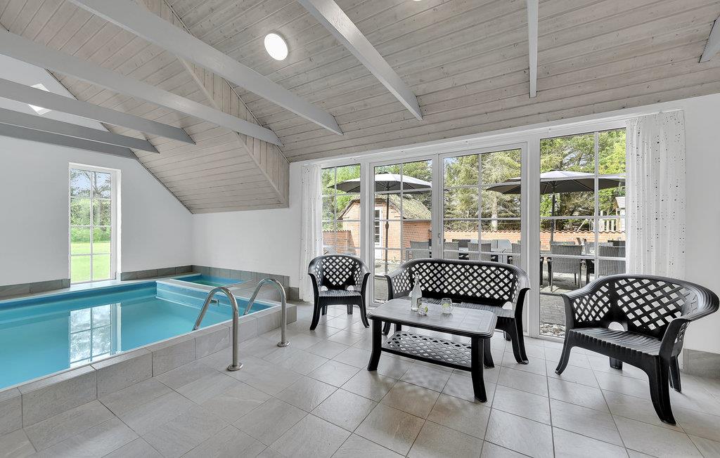 Velkommen til dette moderne og lyse feriehus. Her kan I tilbringe en dejlig tid med familie eller venner. Fantastiske ekstrafaciliteter som swimmingpool, jacuzzi og poolbord giver jer mulighed for at holde en rigtig luksusferie. Børn og firbenede familiemedlemmer kan boltre sig i haven og slå sig løs på legeredskaberne. Imens kan de voksne slappe af på terrassen med en kølig drink og nyde solens stråler. I kan også bruge husets sauna til at slappe af og komme helt ned i gear efter begivenhedsrige dage.