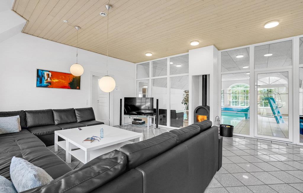 Glæd jer til en dejlig ferie i dette moderne stråtagshus, som er typisk for området. I bydes velkommen her med masser af lys og udsøgte materialer. Takket være den store åbne stue, er der plads nok til at brede jer ud og gøre dette hus til et skønt midlertidigt hjem. Udover den dejlige, lyse stue med udsigt ud til haven kan I se frem til den indendørs pool og sauna samt den åbne terrasse med grill, hvor I kan slappe af og nyde jeres velfortjente pause fra hverdagen.