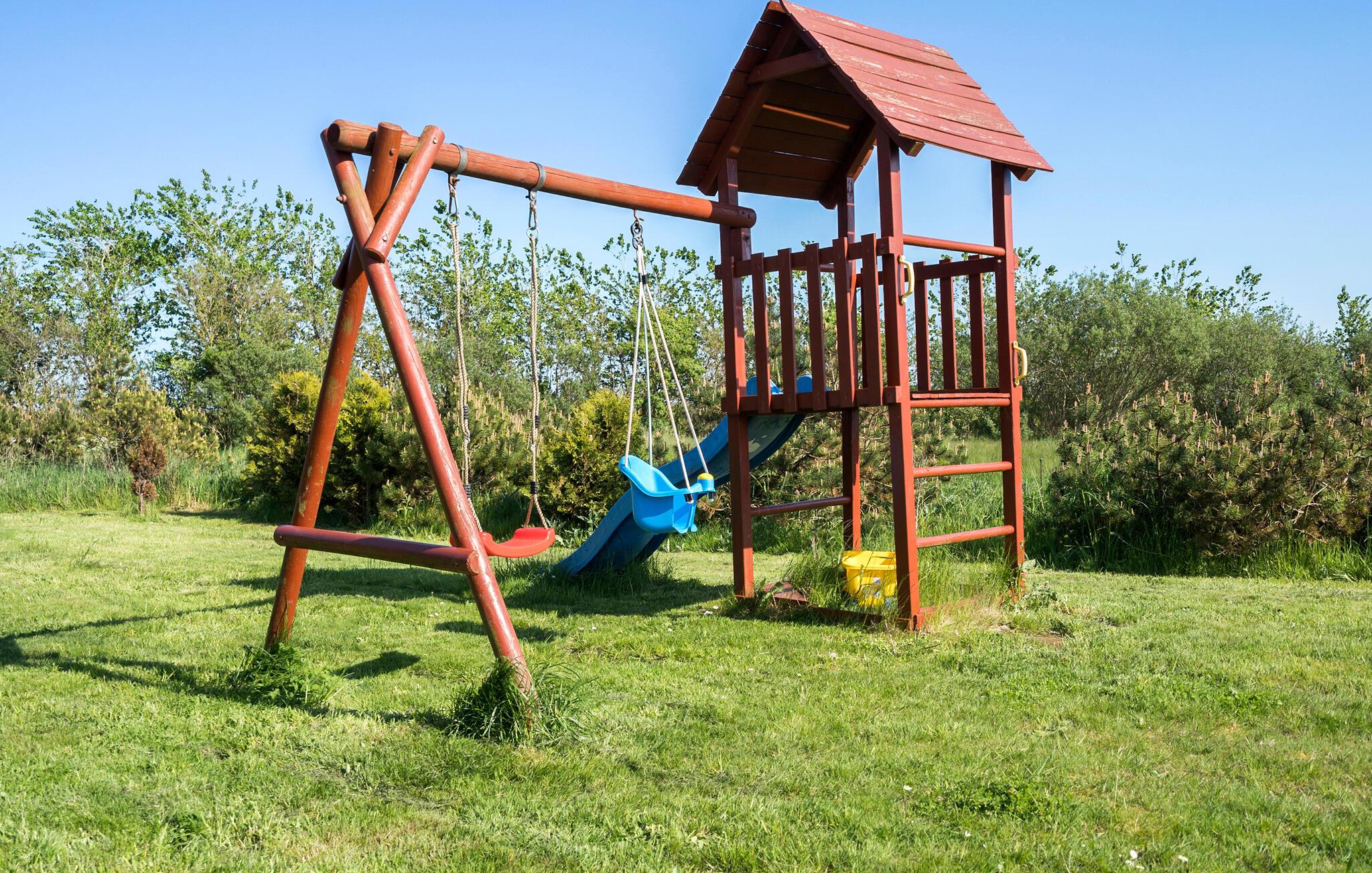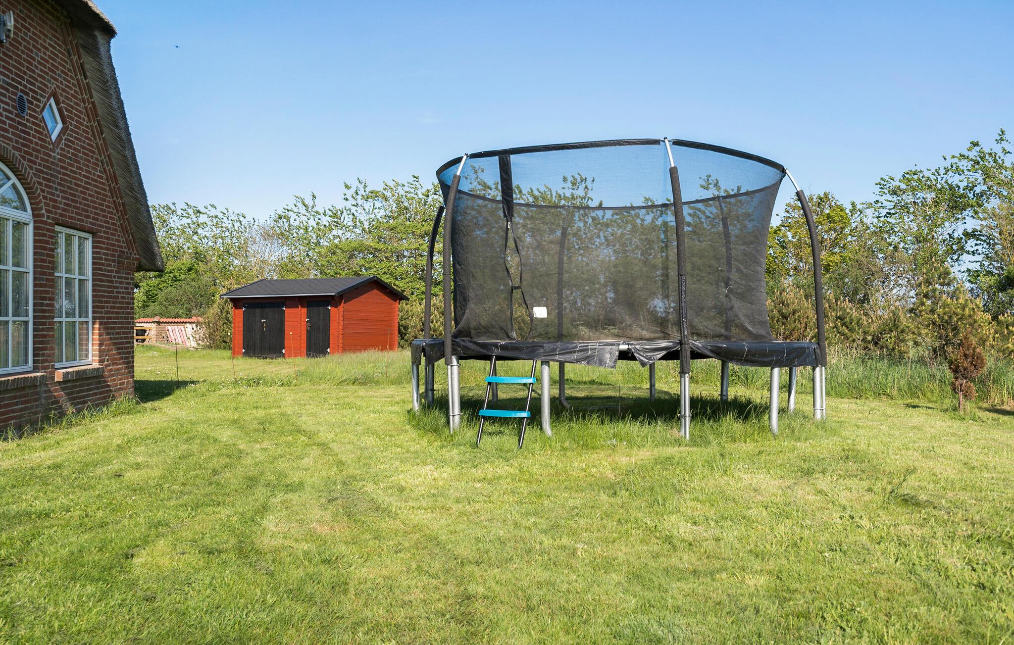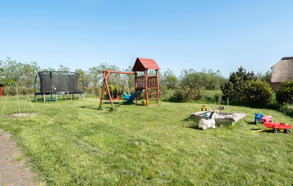 Udeområdet er tilsvarende dejligt. Her får børnene masser af plads og deres egen legeplads at boltre sig på med sandkasse, gynge og trampolin. De voksne kan tage den lidt med ro på terrassen og nyde solen, inden der tændes op i grillen og serveres saftige bøffer under aftensolen. Legepladsen er fuldt indhegnet, så her kan børnene rigtig boltre sig.