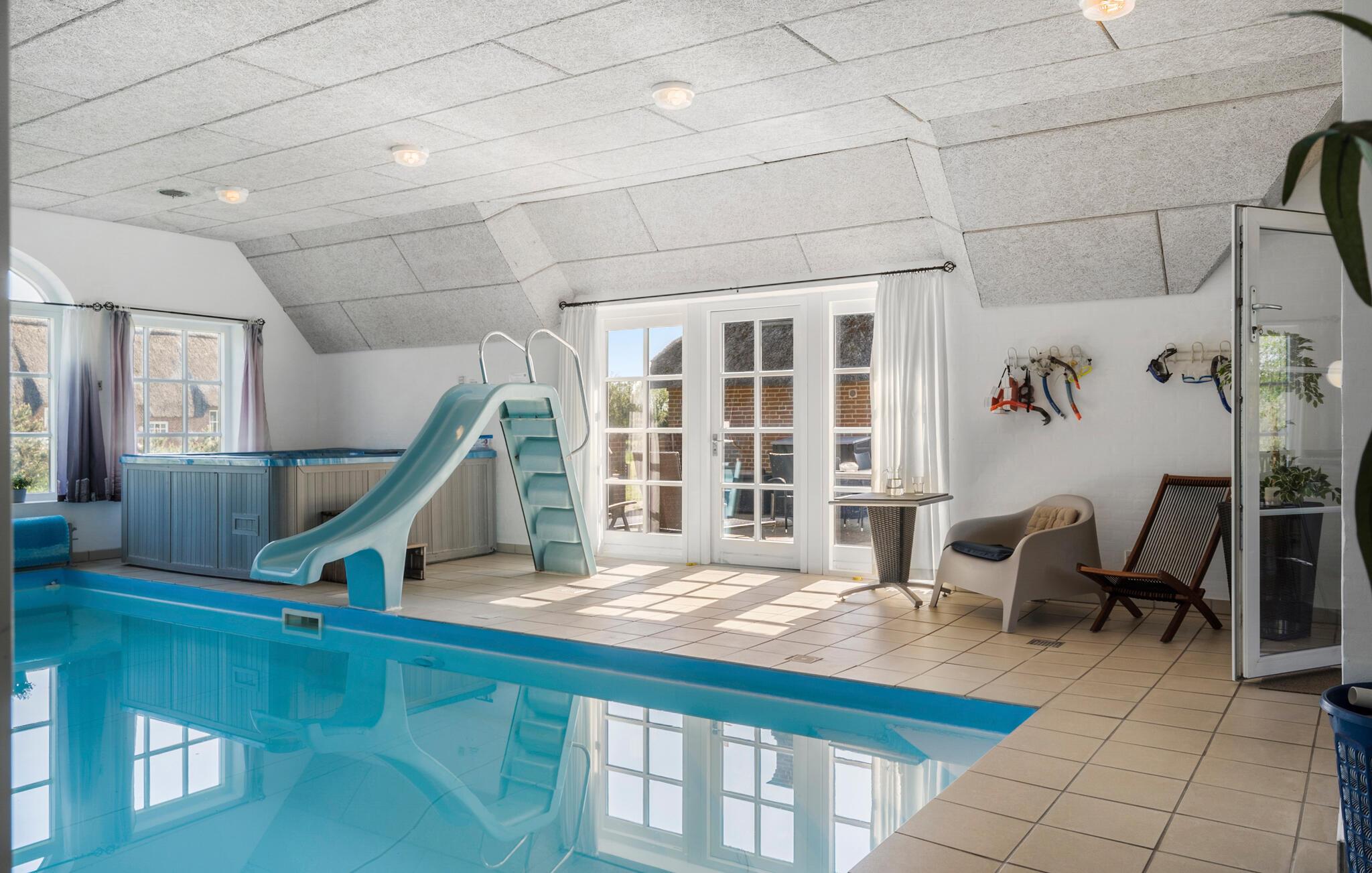 Gør jer klar til årets store familiesammenkomst tæt på Vesterhavet i dette rummelige stråtagshus med indendørspool og gode faciliter.