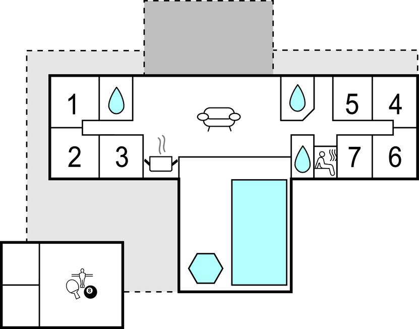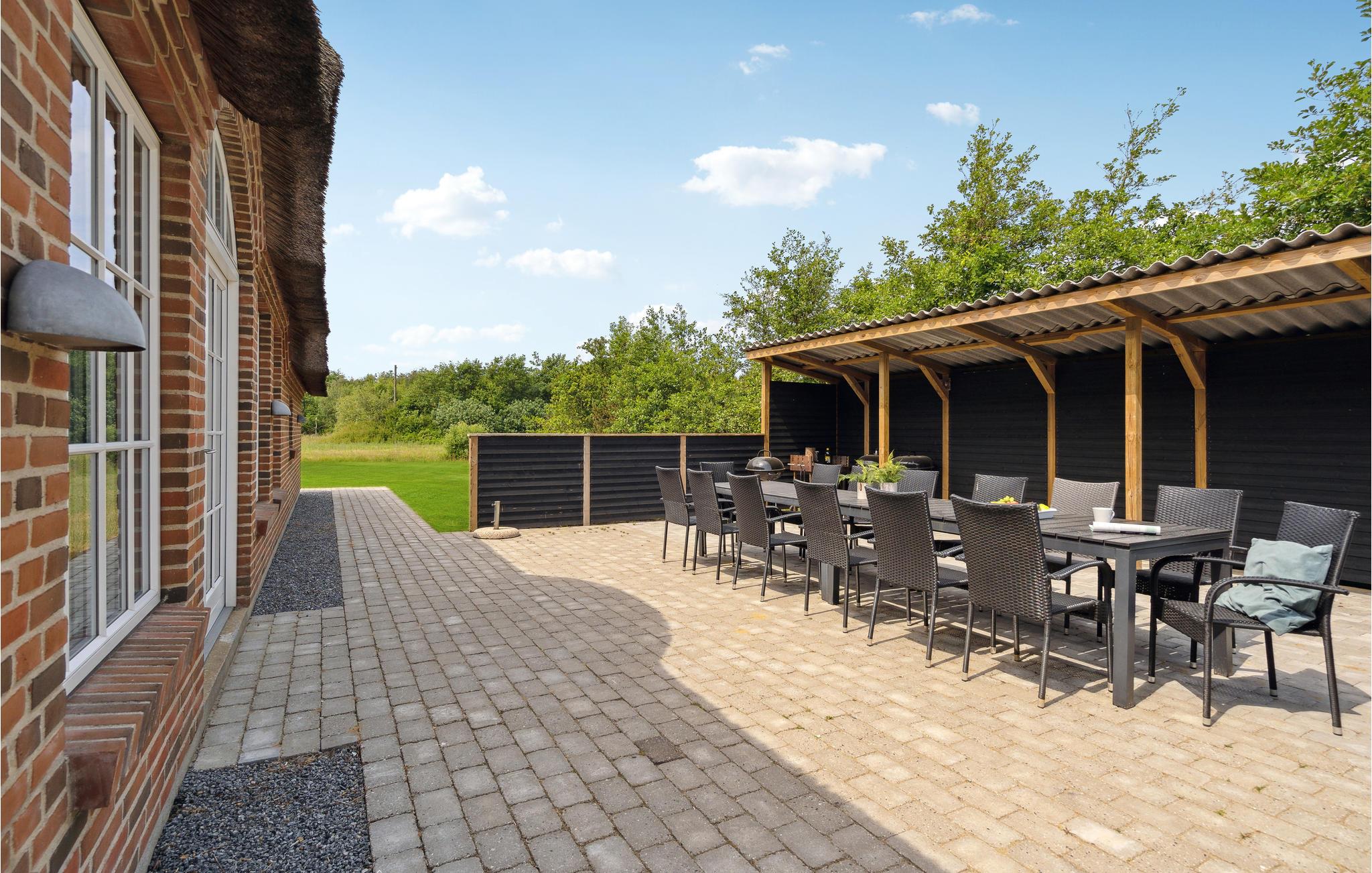 Dette enorme og fantastisk udstyrede feriehus med stråtag er det perfekte feriehus til en luksusferie for den udvidede familie eller flere vennefamilier. Her kommer I ikke til at kede jer, for der er et væld af aktivitetsmuligheder for både store og små. Huset er præget af moderne minimalisme med et charmerende udtryk og lover jer ren velvære. Det sorte interiør skaber en flot kontrast til den hvide farve, og de mange vinduer giver lys, varme og ikke mindst en flot udsigt. Her venter ferieaftener med spillehygge, en god film i hjemmebiografen, fælles madlavning og meget mere. Poolen vil uden tvivl blive udnyttet hele dagen, og spabadet og saunaen inviterer til ren wellness. Mens nogle nyder en kølig drink på en af de store terrasser, når de lune sommeraftener går på hæld, kan de unge hygge sig med et spil billard. De yngste i familien vil helt sikkert nyde den private legeplads med legetårn, trampolin og fodboldmål, mens de lidt ældre og de voksne spiller beachvolley.