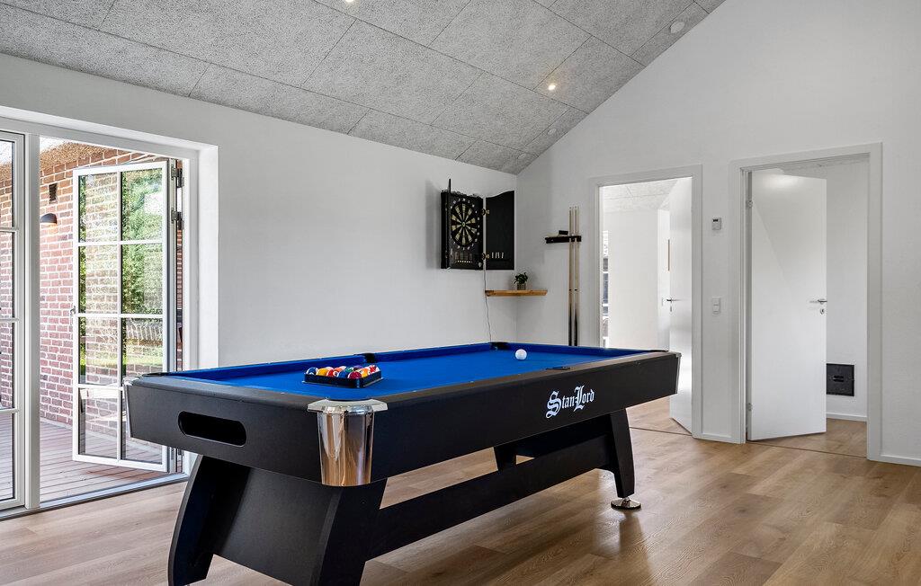 Huset har også meget at byde på, når det kommer til fritidsaktiviteter. Poolbord, bordfodbold, dartskive og en lille siddeplads gør aktivitetsrummet til et mødested for store og små. Beachvolley, fodbold, legeredskaber og et overdækket terrasseområde med grill venter jer på udeområdet. Derudover inviterer det overdækkede spabad på terrassen til at slappe af og er en fornøjelse i al slags vejr.