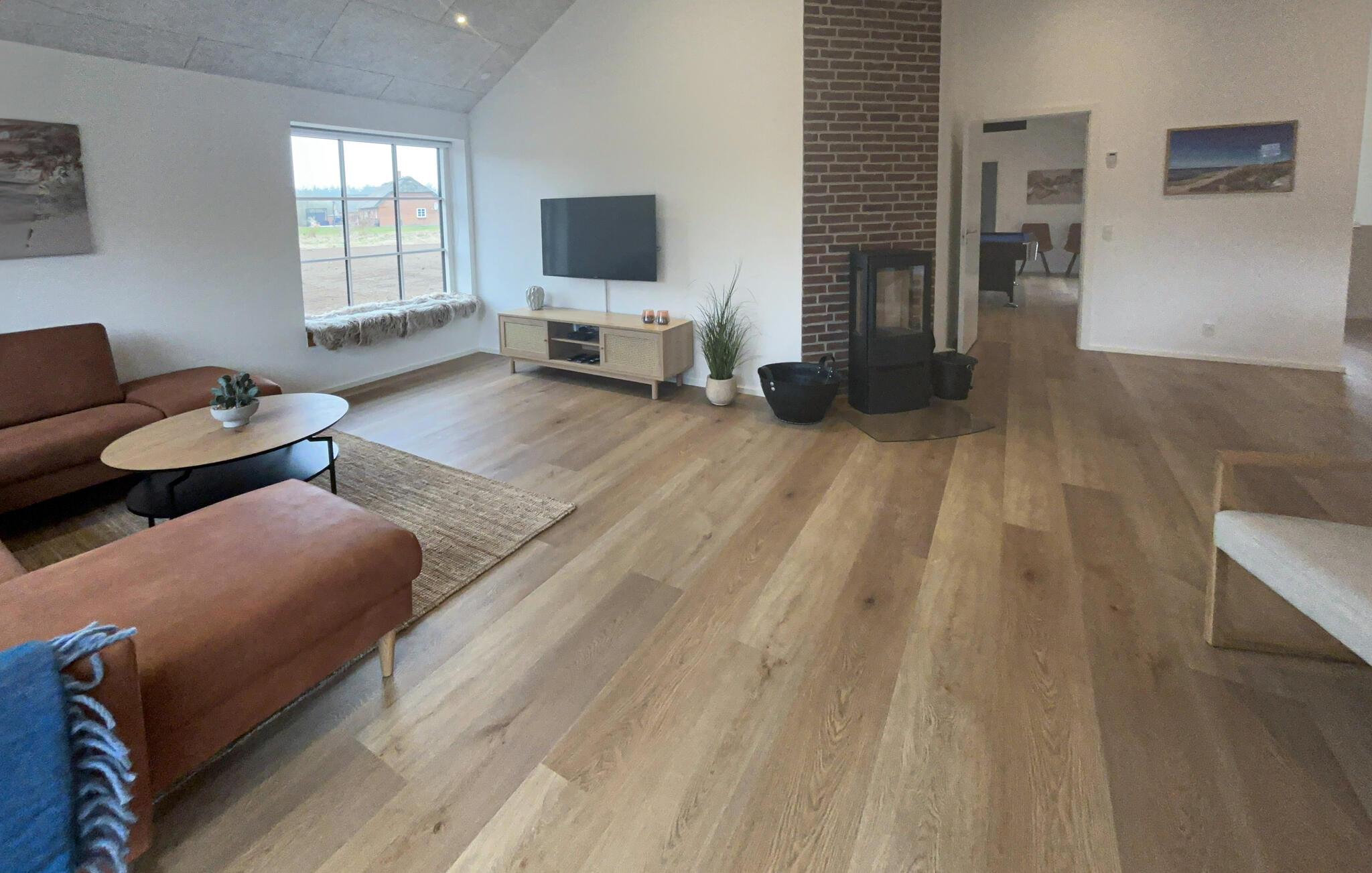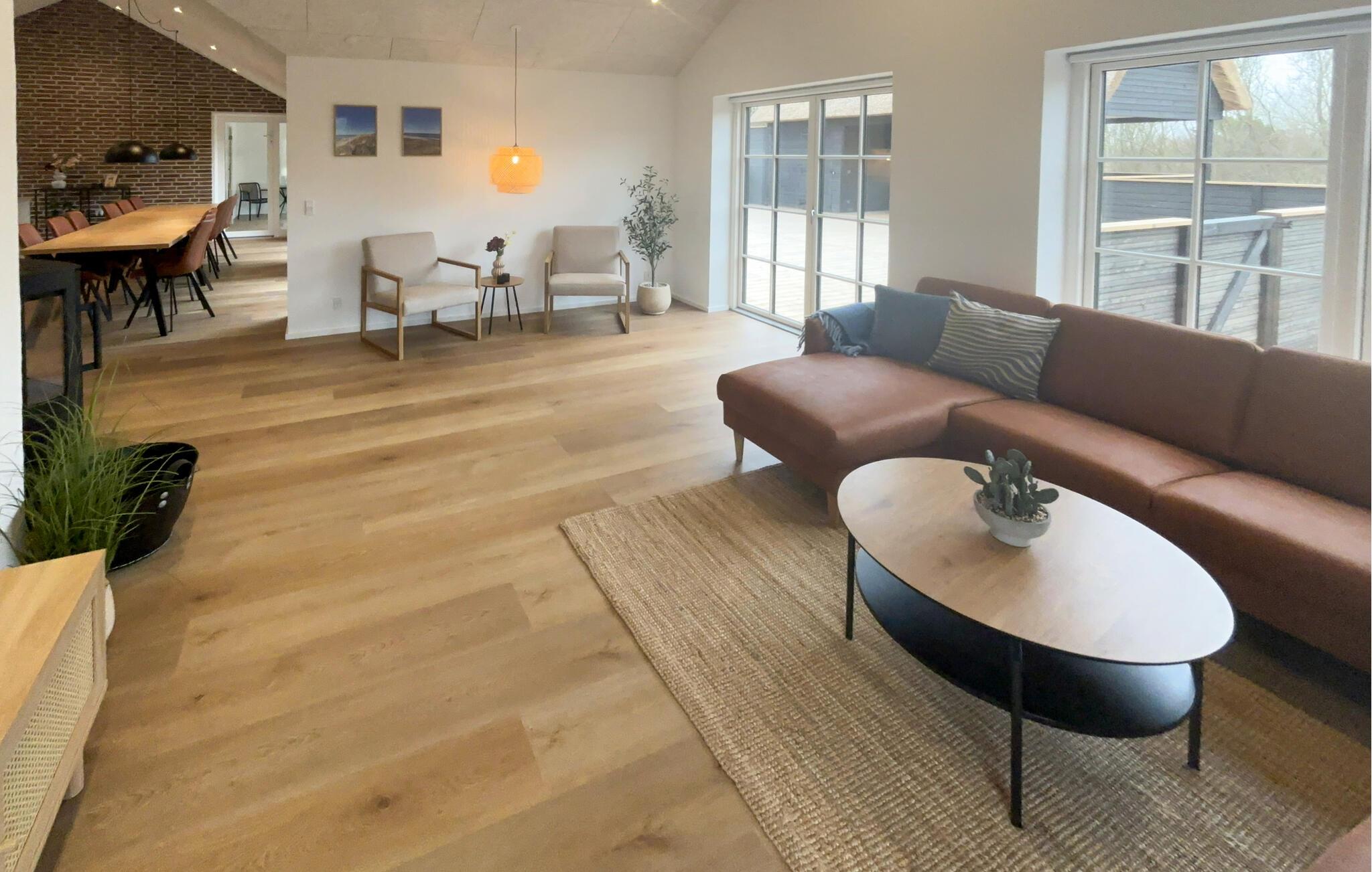 Dette hus er noget særligt med et åbent, lysfyldt boligkoncept, rene linjer og lækre kvalitetsløsninger. Det stilfulde køkken med rummelig kogeø byder på masser af plads til at lave mad og hygge sammen. Den tilstødende spiseplads lægger op til at nyde lange måltider og sociale sammenkomster. I stuen skaber trægulve, en brændeovn og komfortable sofaer en varm, hjemlig atmosfære, ideel til afslappende timer efter en begivenhedsrig dag. Et rigtigt højdepunkt venter jer indendørs med poolen og den interne sauna.