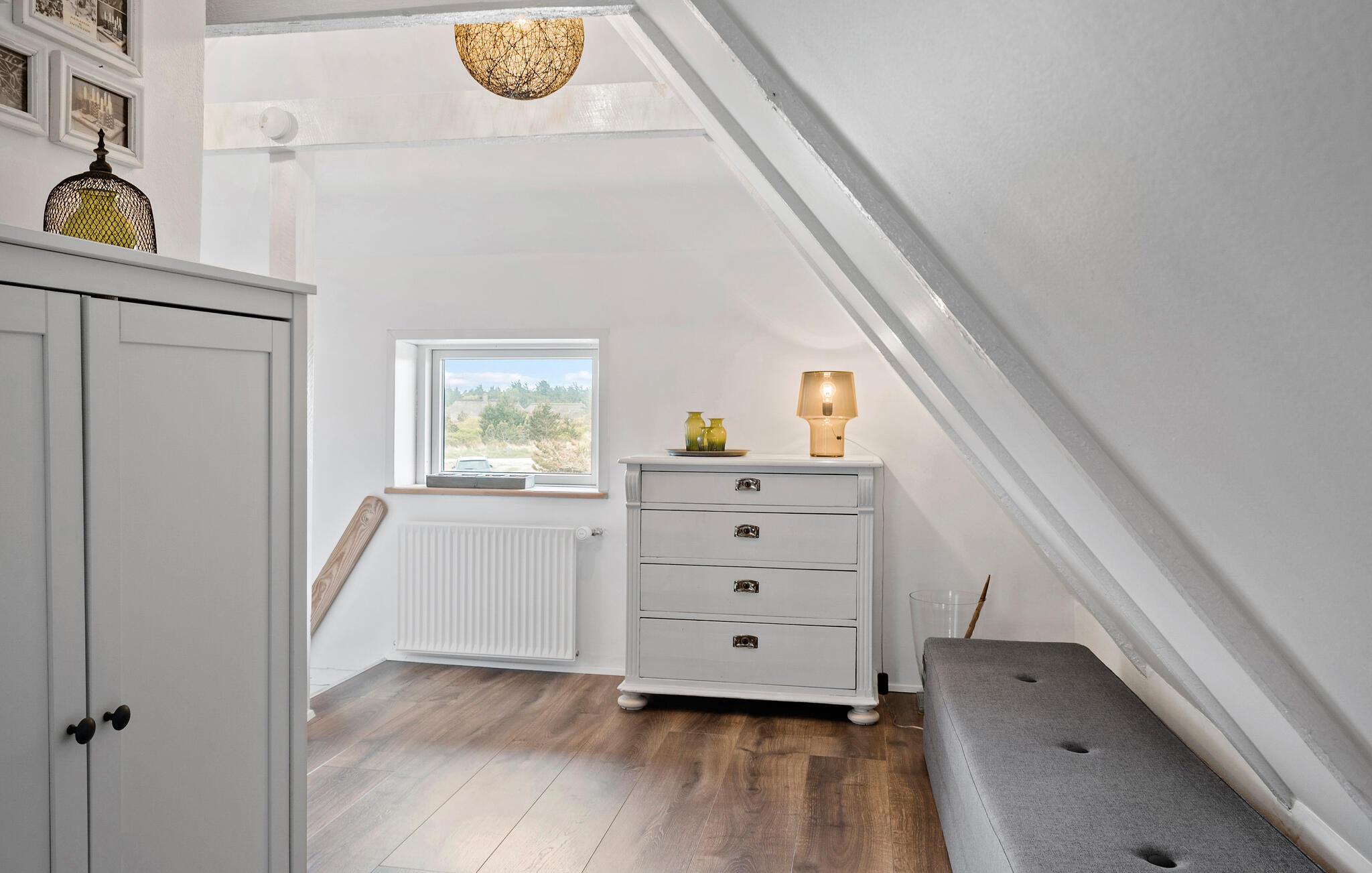 Tilbring afslappende dage i dette charmerende feriehus med stråtag, der smelter hyggelig sammen med de naturskønne omgivelser. Den beskyttede beliggenhed på en åben naturgrund sikrer ro, panoramaudsigt og en særlig atmosfære. Find jer godt til rette i den lyse opholdsstue. De mange vinduer bringer masser af lys ind og tilbyder udsigt over klitterne. Slap af i sofaen eller lænestolene og nyd den hjemlige atmosfære. Det åbne køkken er praktisk udstyret og giver mulighed for at tilberede jeres egne feriemåltider. Der er plads nok ved spisebordet til fælles måltider eller sjove spilleaftener.