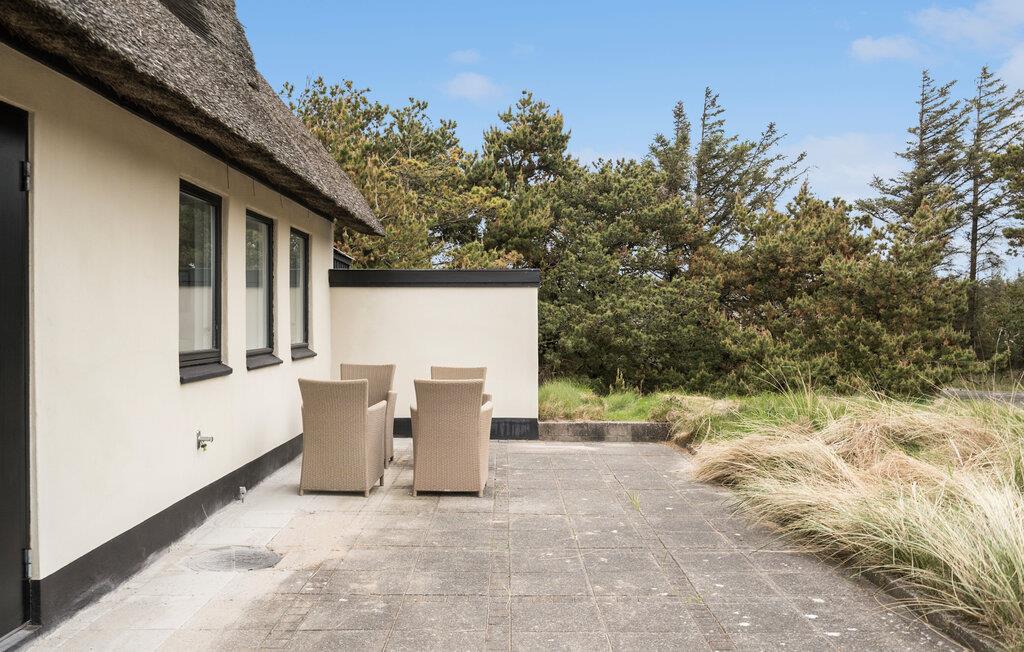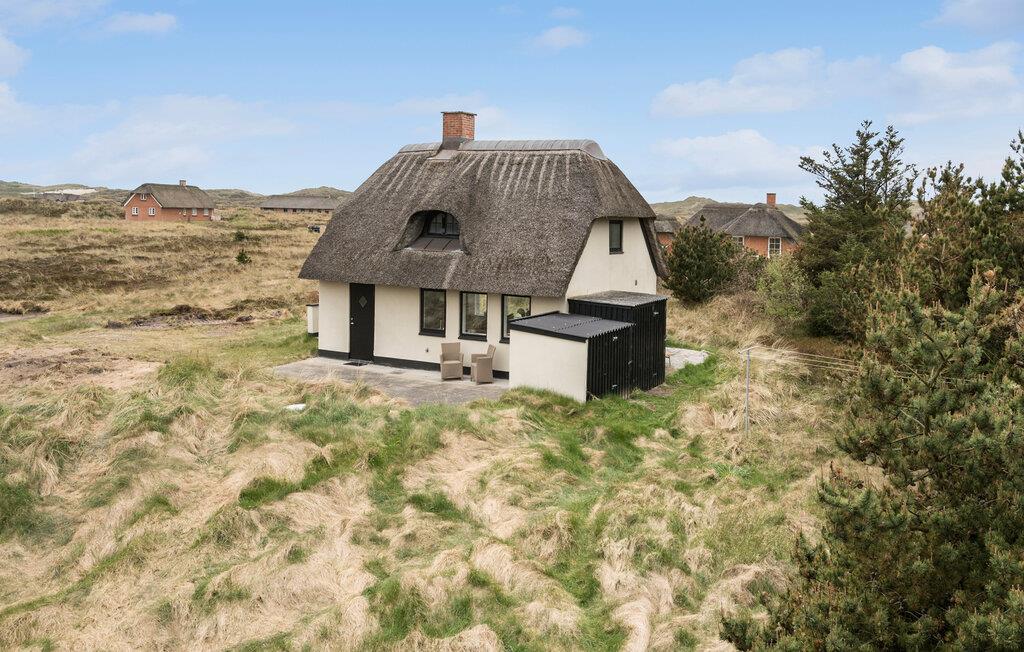 Nyd et charmerende stråtækt feriehus ved Vedersø Klit med panoramaudsigt og solrige terrasser i naturskønne omgivelser.