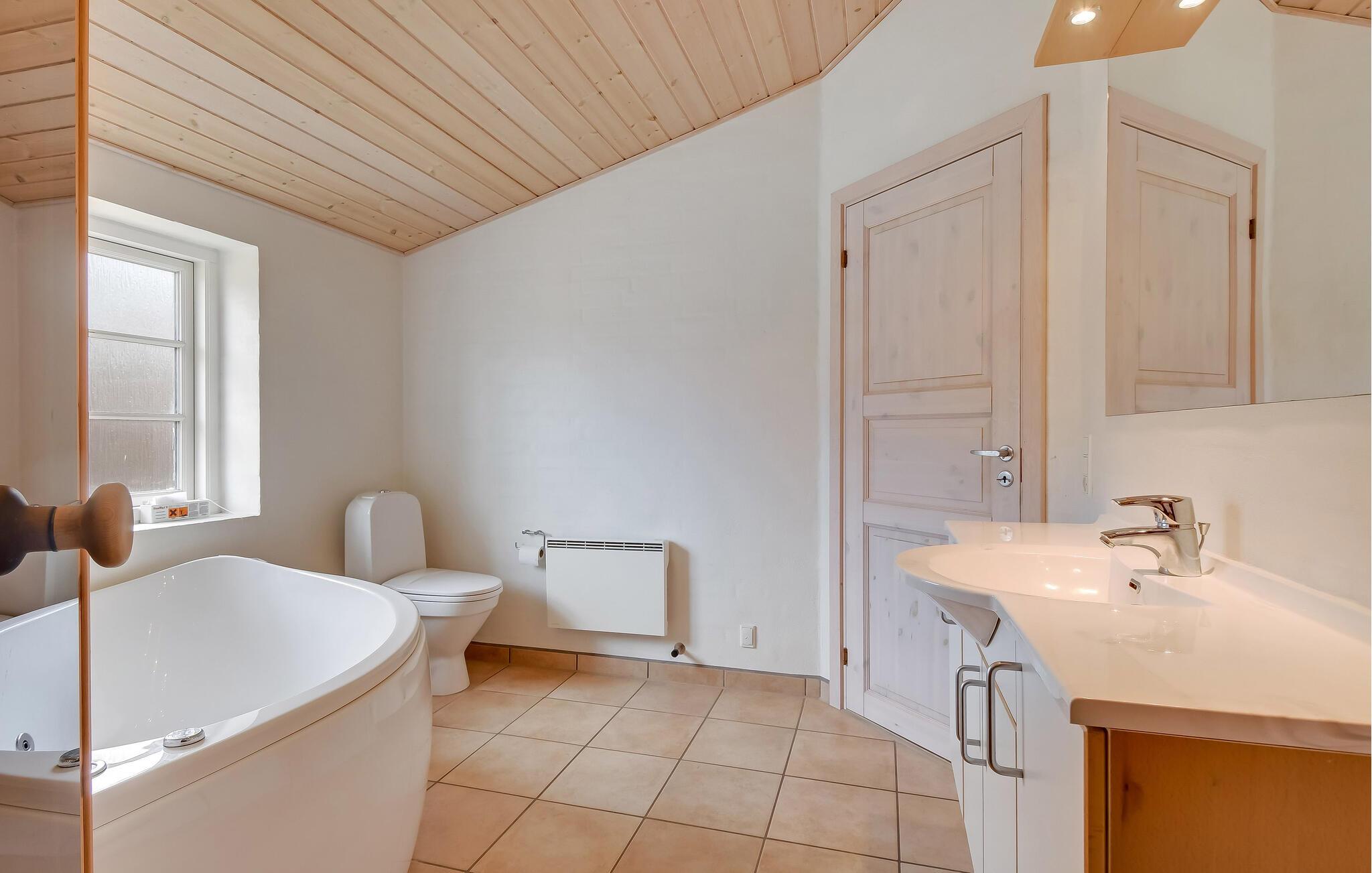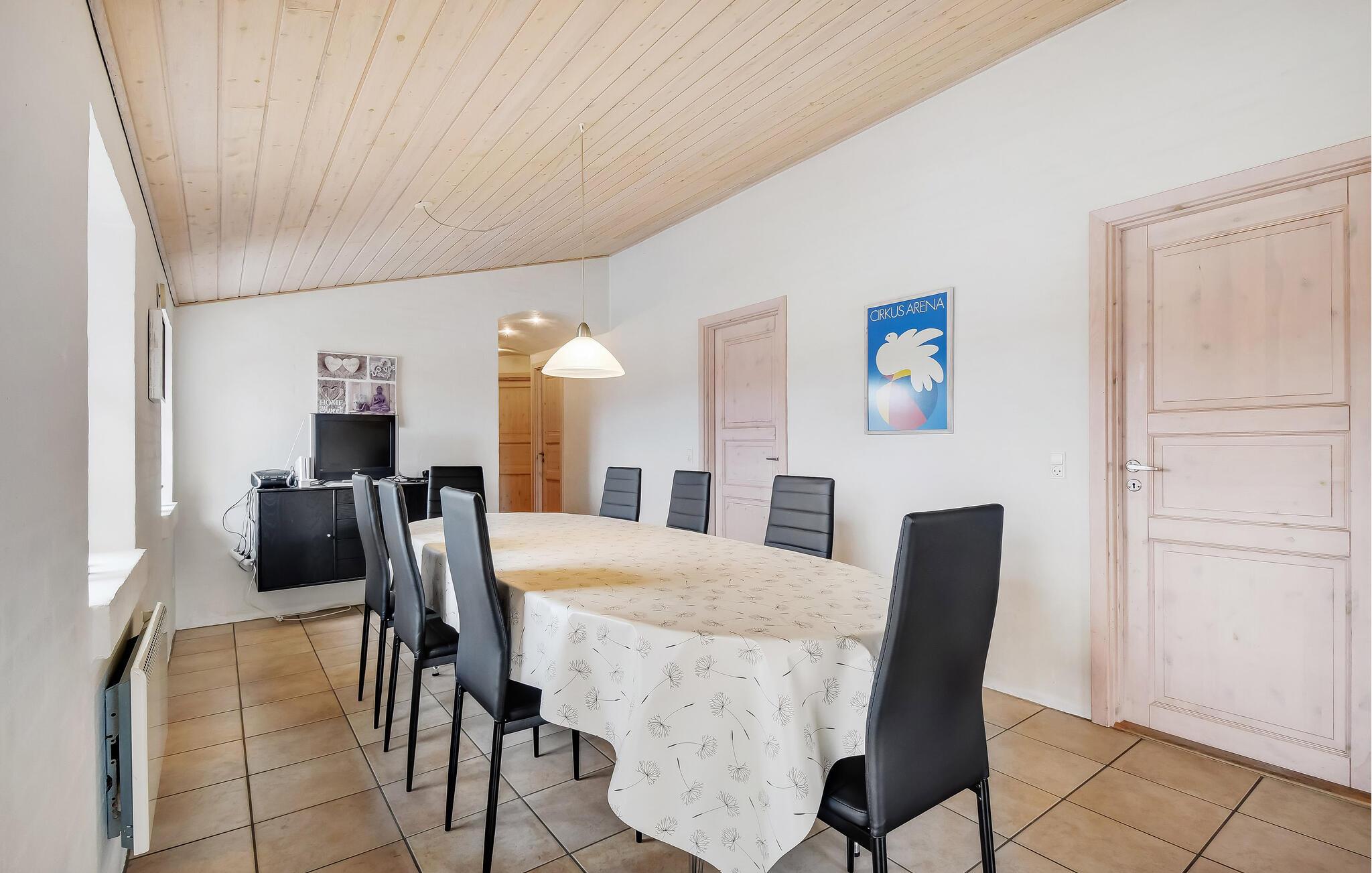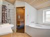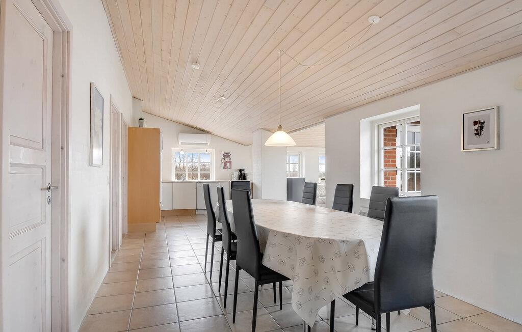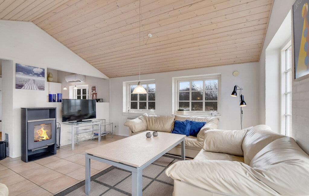 Tilbring afslappende dage i jeres idylliske feriehus, der forener traditionel hygge med moderne komfort. Træd ind i det indbydende hus, og mærk den lyse, venlige atmosfære. Den åbne stue med store vinduer lukker masser af lys ind og giver jer en skøn udsigt over landskabet. Sæt jer godt til rette i den behagelige sofa, læs en bog eller se en film, mens ilden stille knitrer i brændeovnen. Det moderne køkken er åbent og praktisk indrettet – perfekt til fælles madlavning og hyggelige måltider ved det store spisebord. I badeværelset kan I slappe af i spabadet eller saunaen og lade krop og sind falde til ro.