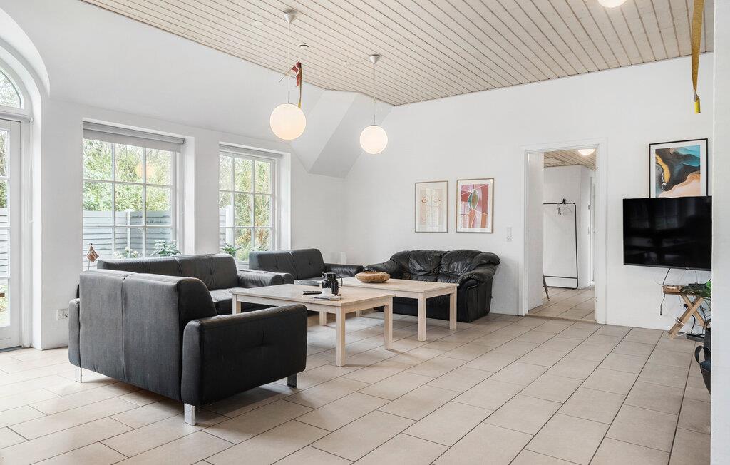 Velkommen til Vedersø Klit og denne mageløse ramme om jeres ferie! Her får I en skøn bolig med plads til tre familier eller en større rejsegruppe. Indretningen er klassisk, enkel og smagfuld med store, åbne rum, hvor lyset falder smukt ind gennem de høje vinduespartier. Det lækre køkken lægger op til hyggelige madlavningsaftener, hvor alle kan være med. Efter en dejlig middag kan I finde sammen i de bløde møbler, sætte en film på eller hygge jer med brætspil, mens ilden knitrer i brændeovnen. Husets faciliteter topper med poolrummet, som bliver et rent slaraffenland for børn og voksne. Der er både swimmingpool, spabad og en sauna, hvor I kan nyde en stille stund oven på frisk gåtur.