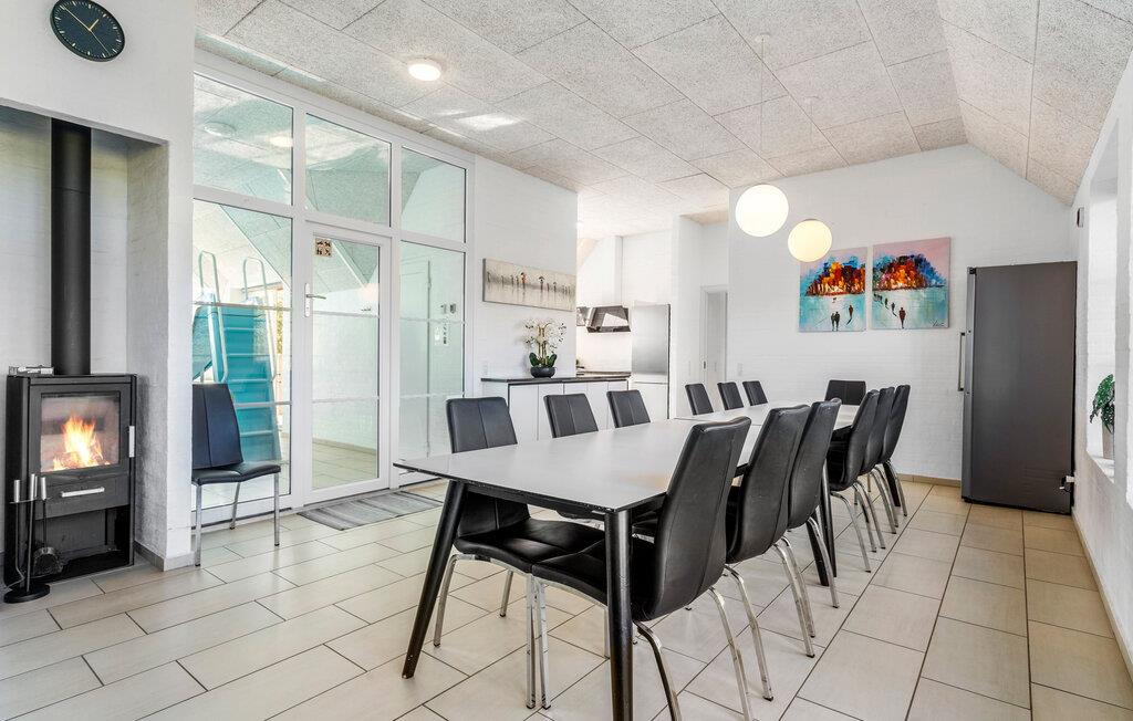 Dette karakterfulde hus med stråtag lægger op til en førsteklasses ferie. En indbydende stue med en stor sofagruppe lægger op til at hygge jer og slappe af, mens I nyder kaffe eller ser tv. I det moderne køkken kan I trylle lækre måltider frem sammen og nyde dem ved det lange spisebord med venner. Den indendørs pool med rutsjebane byder på masser af udendørsaktiviteter.