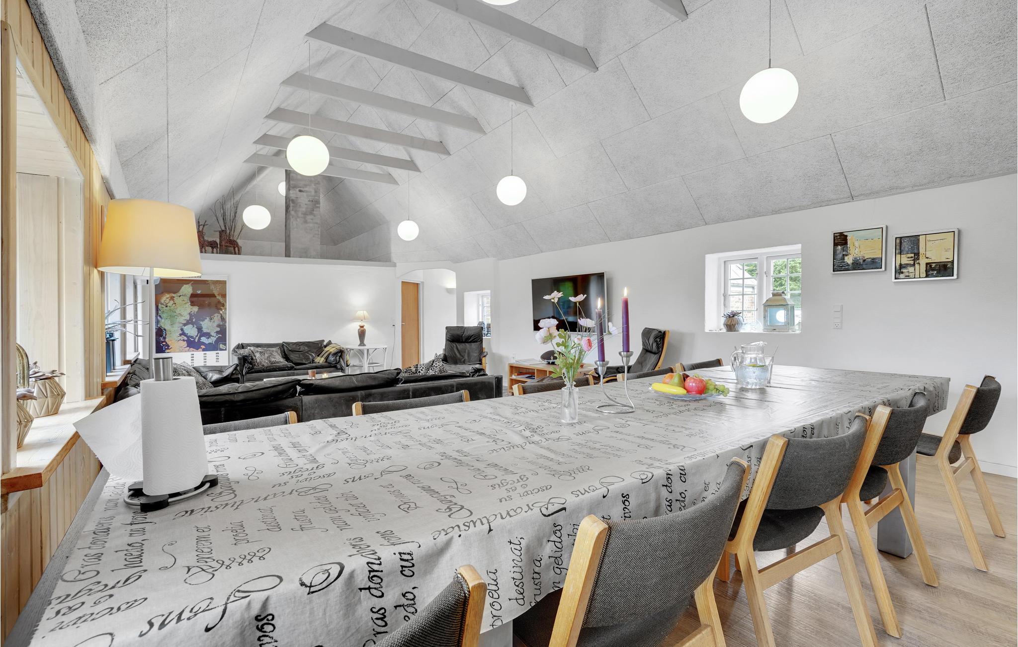 Ved spisebordet i hovedhuset er der plads til 14 gæster, så I kan sidde og spise sammen allesammen. Der findes vaskemaskine og tørretumbler i hovedhuset. Den separate lejlighed indeholder 3 soveværelser, badeværelse med bruser samt køkken og stue i forlængelse af hinanden, her findes ligeledes en varmepumpe og et spisebord med plads til 8 gæster. Sommerhuset ligger på en stor naturgrund, så I har gode muligheder for at finde læ og nyde en god bog, uden generende blikke fra naboen.