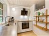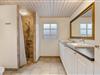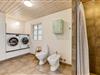 Det store moderne og rummelige badeværelse i stueetagen er udstyret med gulvvarme, så I ikke skal tænke på at få kolde fødder. Vaskemaskinen og tørretumbleren i huset sørger for en del af det praktiske under jeres ophold.