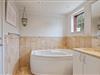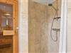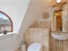 I stueetagen finder I også et af de to badeværelser i sommerhuset. Begge badeværelser er udstyret med gulvvarme, dog byder badeværelset i stueetagen jer på ekstra wellness efter en lang dag på stranden, da I her finder sommerhusets egen sauna og dejligt boblebad.