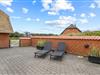 Udenfor finder I en stor, lukket terrasse, hvor alle kan finde en solrig krog at nyde dagen i. Her kan både børn og hunde færdes frit og trygt uden opsyn. Havemøbler og liggestole står klar til afslapning, og når aftenen falder på, kan I tænde op i grillen og nyde et godt glas vin – den perfekte afslutning på en dejlig feriedag.