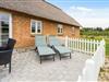 Den store solterrasse på Vedersø Klitvej 40B kan lukkes helt af. Børnefamilien og hundeejerne kan således føle sig trygge, når de åbner op for terrassedøren og søger ud for at nyde solen og den friske havluft på terrassen, hvor havemøblerne og liggestolene står klar.