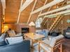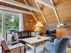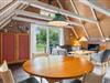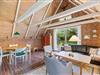 I forlængelse af køkkenet ligger opholdsstuen, som emmer af hygge. På de lidt koldere dage har I mulighed for at tænde op for brændeovnen og lige føle den ekstra feriehushygge, som det giver. Har I ikke tændt for brændeovnen, har I mulighed for at bruge den energibesparende luft til luft varmepumpe, som sørger for et behageligt indeklima hele året rundt.