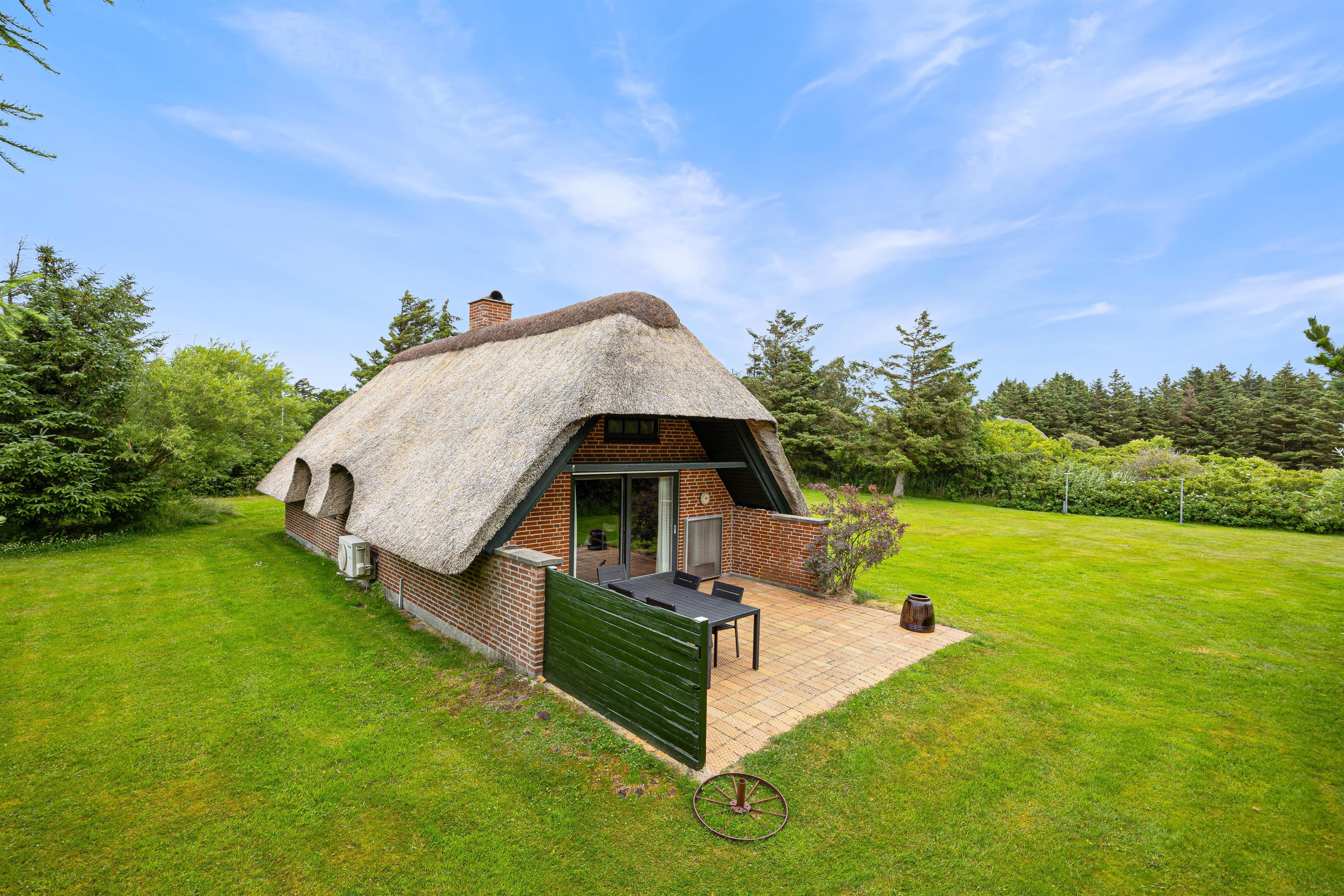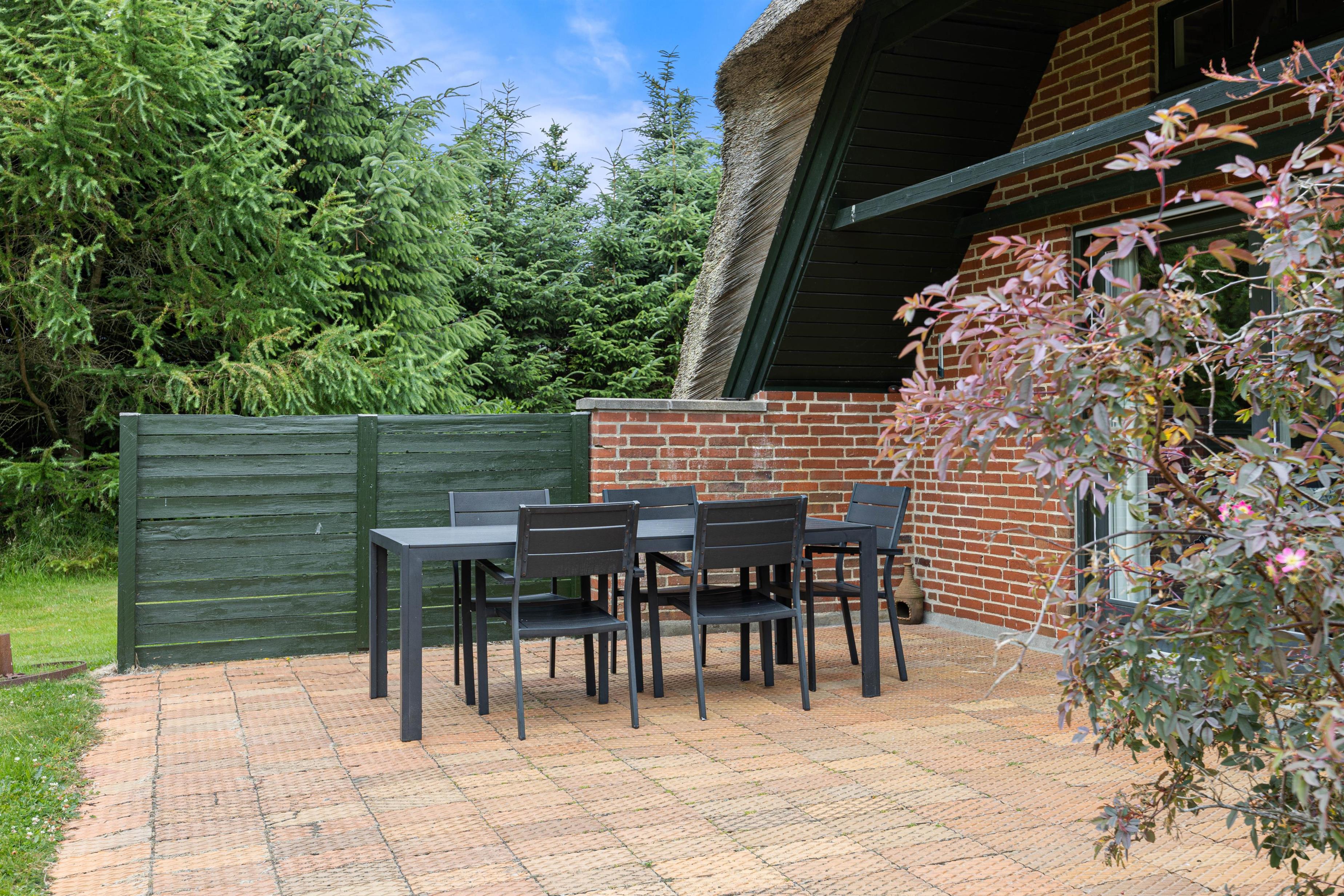 Rundt om huset finder I hele to skønne terrasser udstyret med havemøbler og solvogne, som står klar til jeres brug. Her kan I nyde solen, et koldt glas vin og lækre måltider under åben himmel – perfekt til afslappende feriedage i det fri.