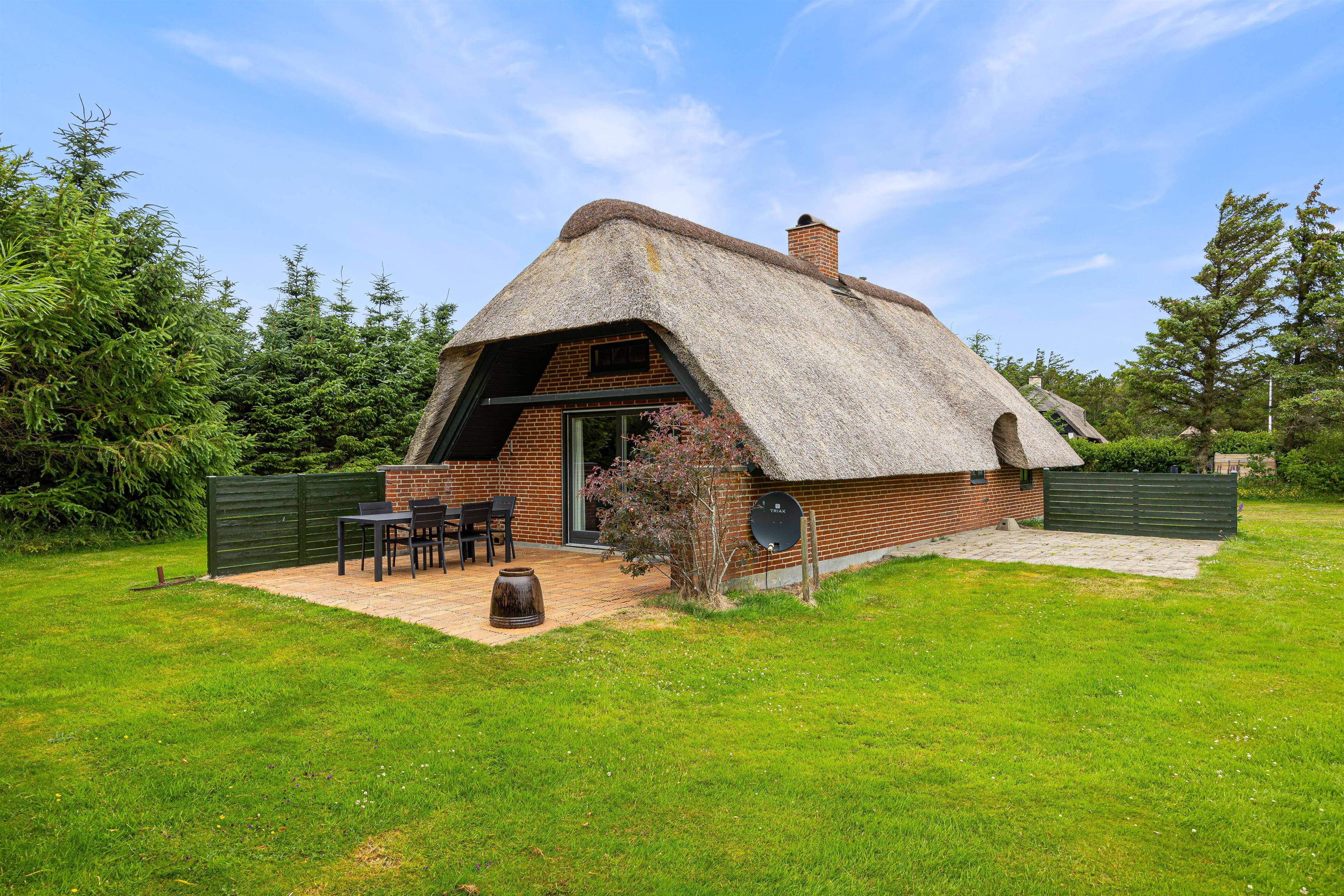Er I på udkig efter et hyggeligt, lille stråtækt feriehus, som emmer af feriehusstemning? Så er feriehuset på Sundhuse 24 i Vedersø Klit et rigtig godt valg for lige netop jer. Her er der plads til 4 gæster og 2 hunde, som kan holde en rolig og god ferie sammen. Her er hverken langt til den kilometerlange strand eller indkøb.