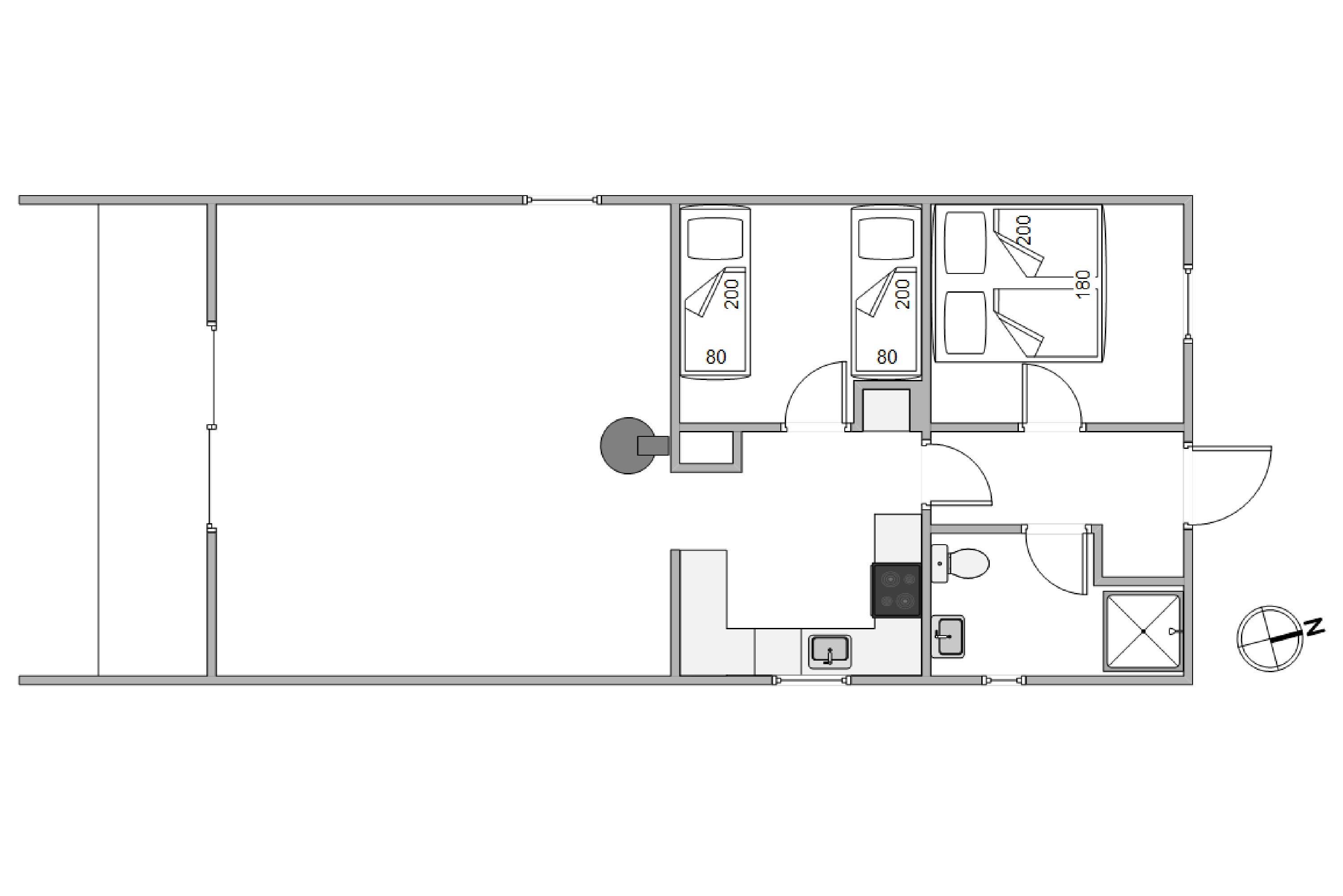 Lige så snart I træder indenfor i det 65 kvadratmeter store feriehus, bliver I mødt af ægte feriehusstil og -stemning. Feriehuset indeholder 2 gode soveværelser, hvor det ene værelse er indrettet med en dobbeltseng, og det sidste værelse er indrettet med 2 gode enkeltsenge. Det åbne og hyggelige køkken har alt, I har brug for, for at tilberede et lækkert måltid mad til hele familien. Opvasken skal I ikke tænke på, da der er en opvaskemaskine til jeres rådighed.