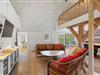 Et stort aktivitetsrum med billard, TV og hyggehjørne sørger for underholdningen for alle – børn som voksne - også på regnvejrsdage. I aktivitetsrummet er der delvis åbent helt op i kip, hvilket giver et dejligt stort rum. Her er også husets hems med 2 sovepladser. Et perfekt rum for hele familien – eller til familiens unge.