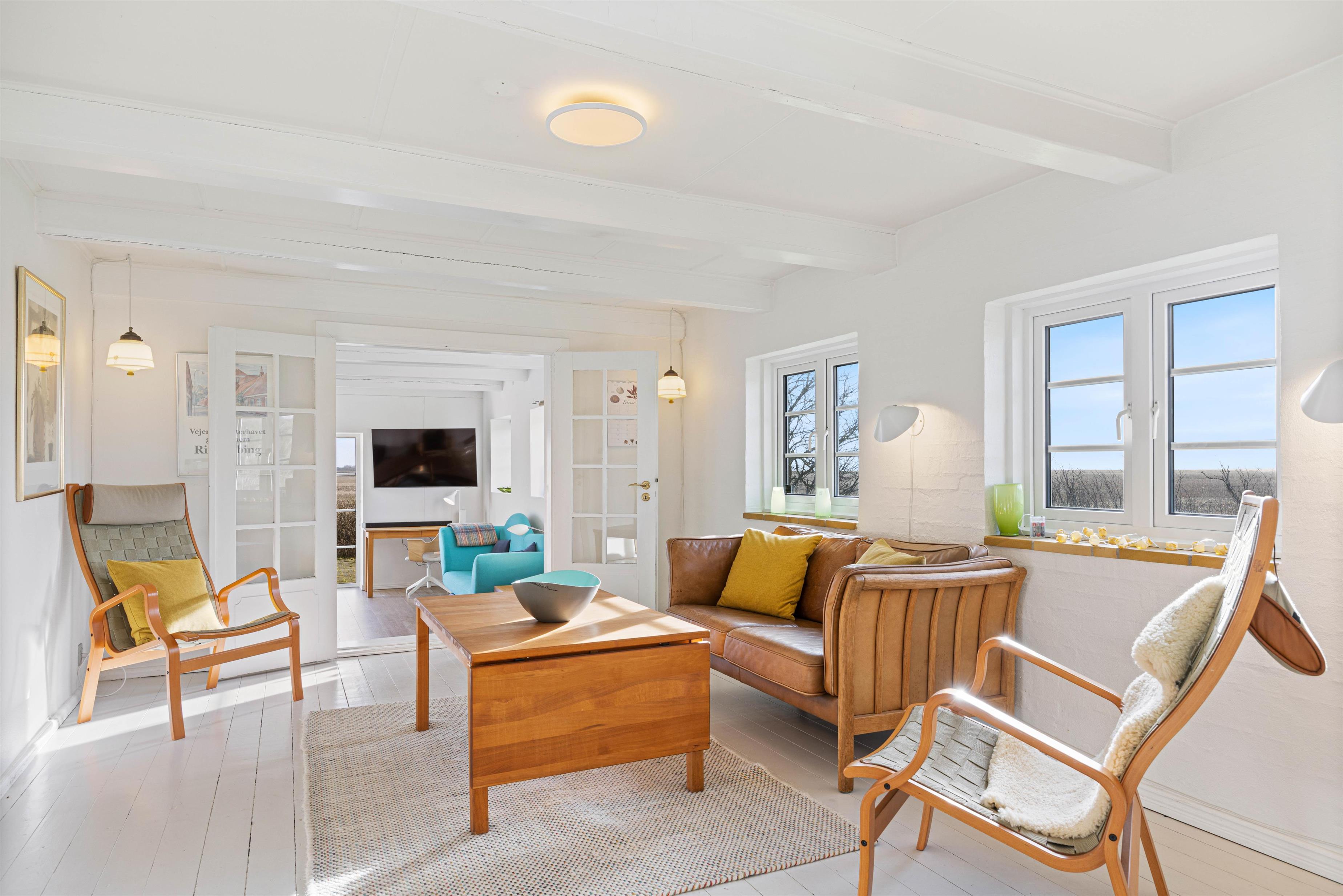 Den store TV-stue har en storslået udsigt over Vest Stadil Fjord, hvor man kan følge med i naturens gang - og ofte se dyrene helt tæt på.