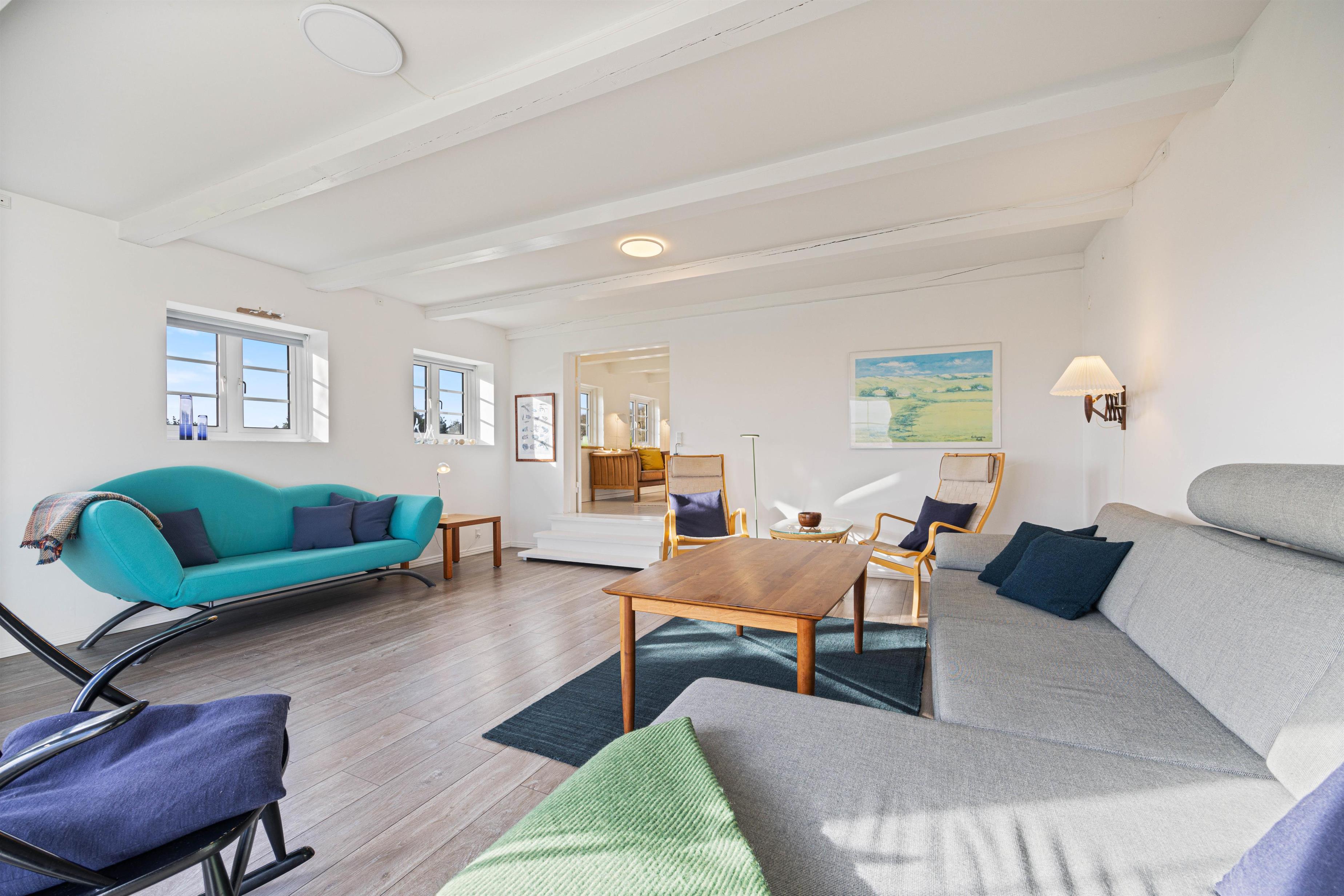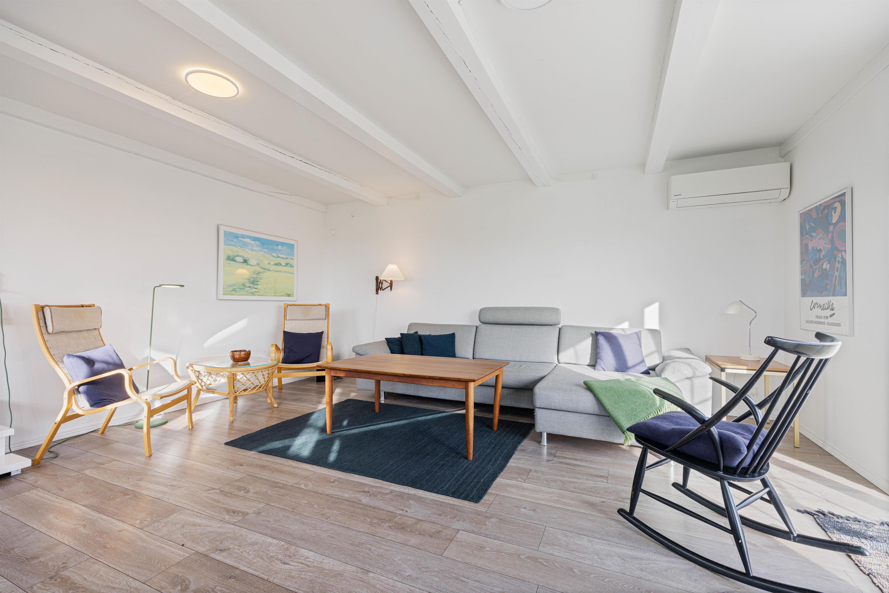 Der er en hel speciel charme ved dette feriehus, hvor det flotte, lyse køkken-alrum med alle vigtige hvidevarer er et af feriehusets store opholdsrum med plads til alle. De 2 mindre, meget hyggelige stuer med en luft til luft varmepumpe, der sørger for et behageligt indeklima.