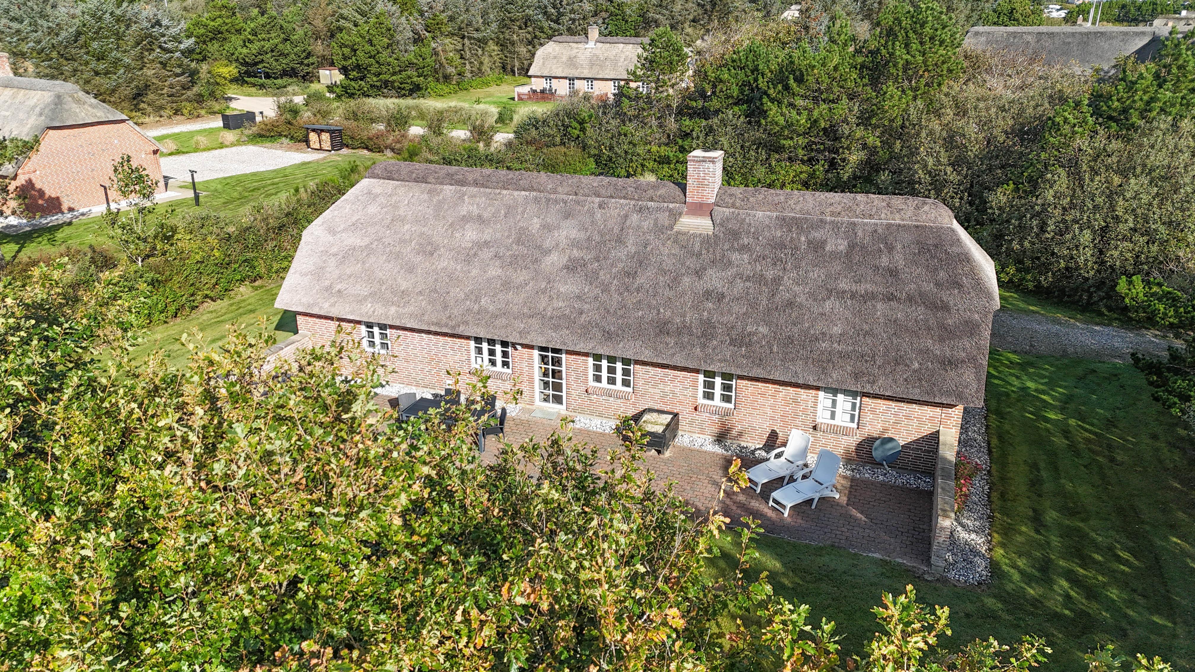 Ikke langt fra det imponerende Vesterhav ligger dette indbydende feriehus på 106 m², omgivet af en 1500 m² stor, delvist plejet naturgrund. Her får du den helt rigtige vestkyststemning – frisk havluft, åbne vidder og ro til at slappe af. Rundt om huset findes flere gode terrasser, bl.a. mod syd og øst, så du altid kan finde sol, læ eller en stille krog til morgenkaffen.