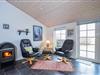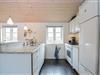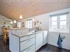 Midt i huset ligger det store, åbne opholdsrum med køkken, spiseplads og stue – et hyggeligt samlingspunkt med brændeovn og fladskærms-tv.