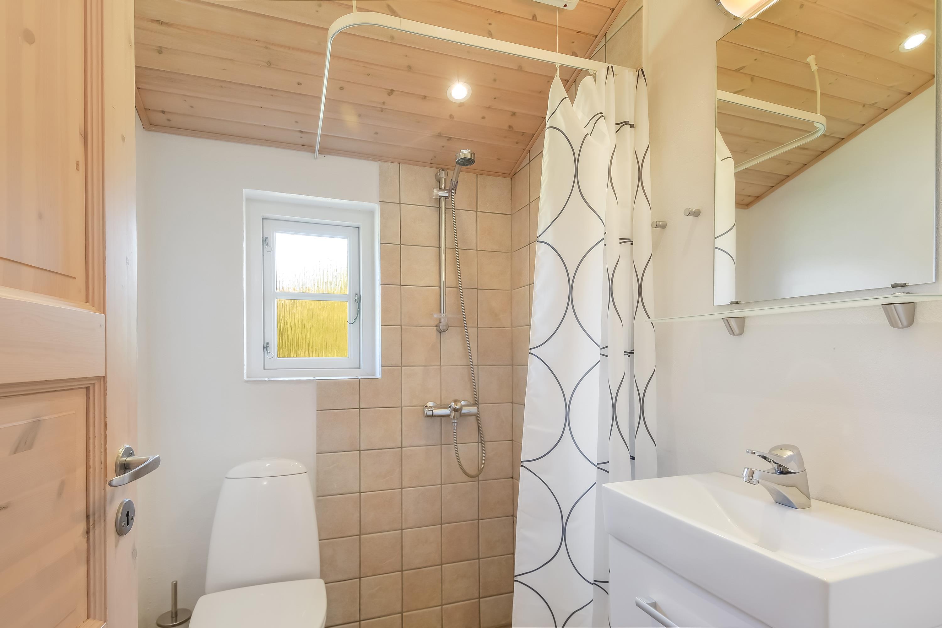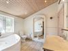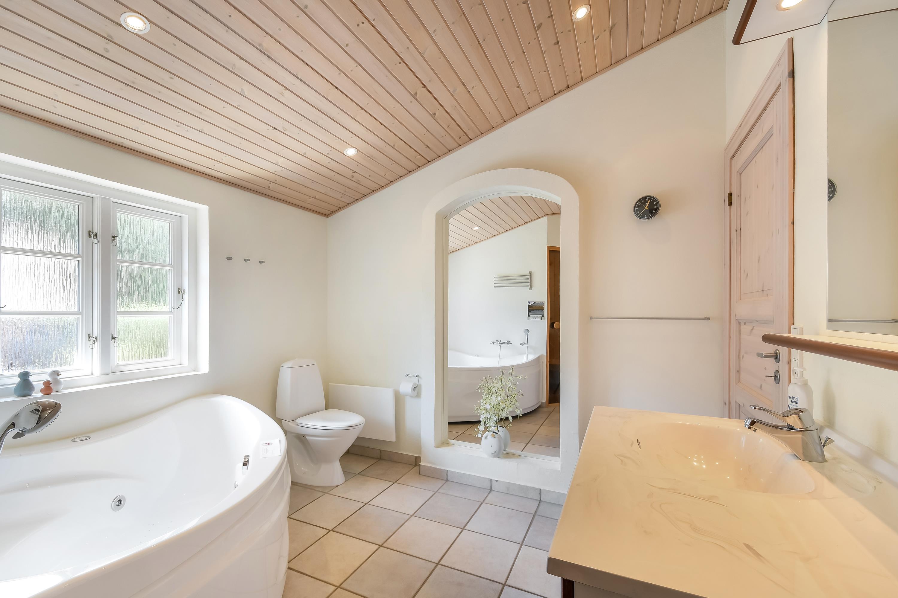 I badeværelset i den østlige ende ligger husets wellnessområde med spabad og sauna – perfekt til afslapning på en kølig dag eller efter en frisk gåtur på stranden.