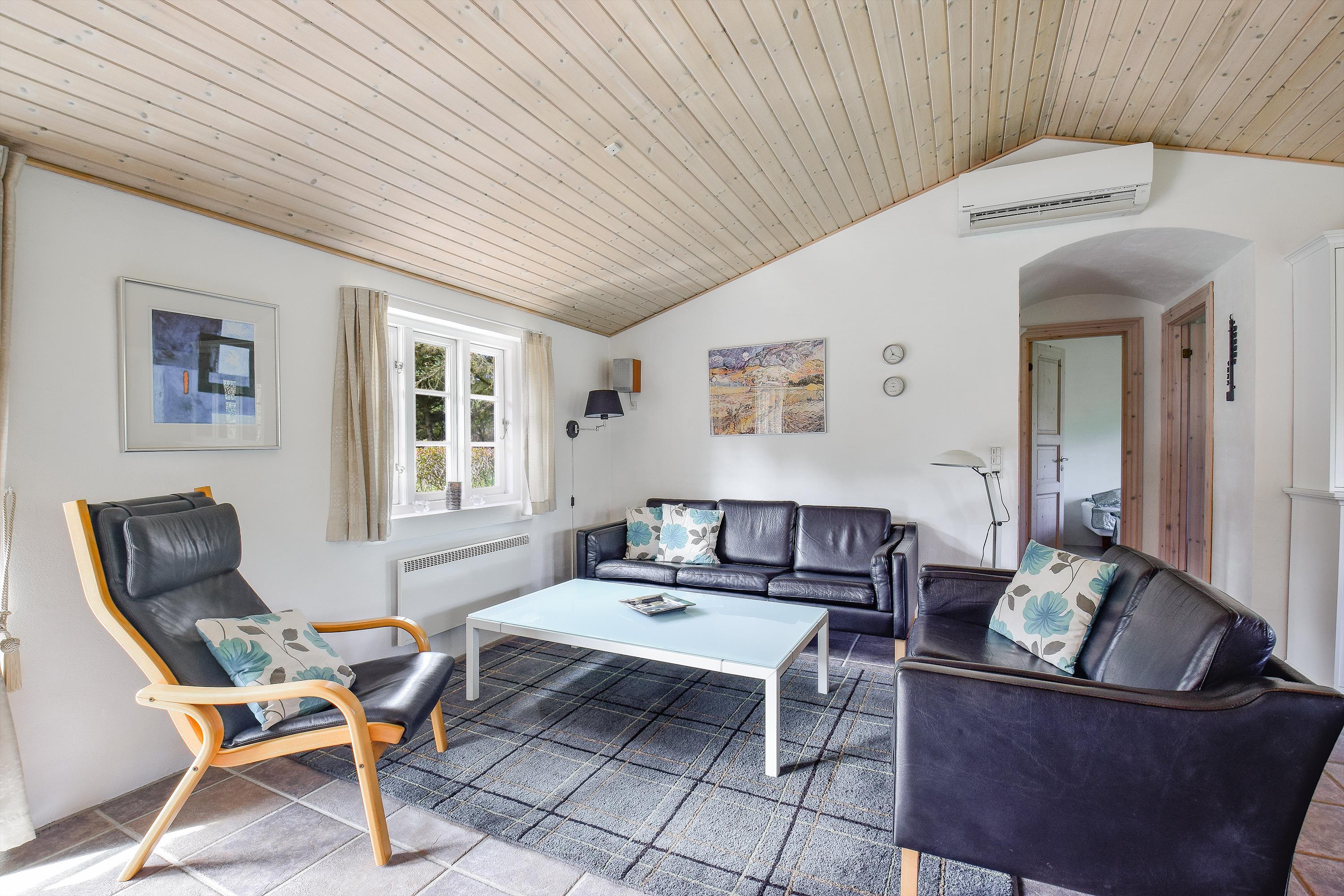 Dette dejlige og velindrettede feriehus byder på plads, komfort og fred, og ligger for enden af en stille, lukket vej på en smuk grund omgivet af træer. Her kan du nyde privatliv og ro – kun et stenkast fra hav og strand.