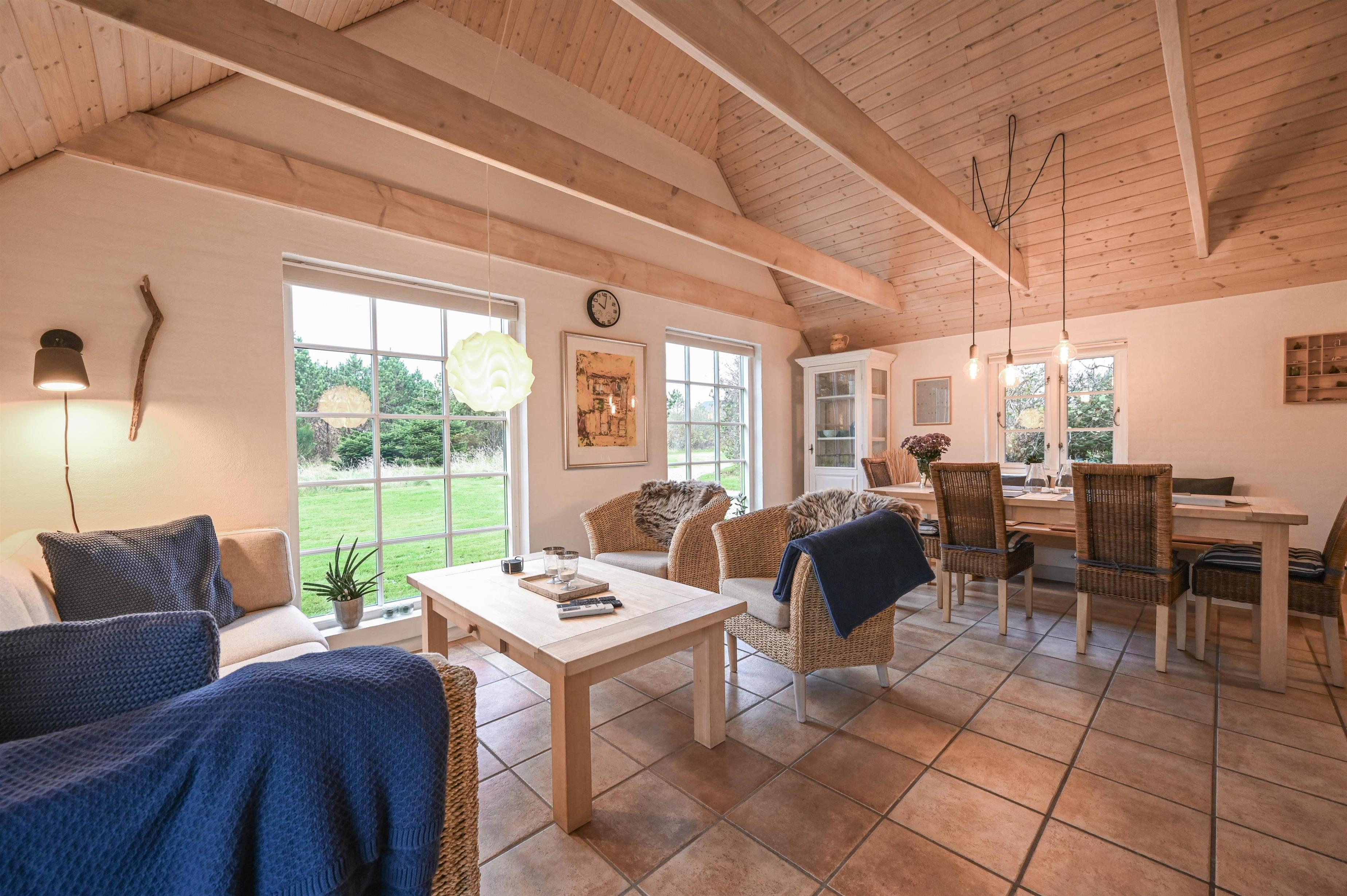 Et smukt og indbydende feriehus, hvor komfort, ro og natur går hånd i hånd – ideelt for gæster, der ønsker en afslappende ferie i fredelige omgivelser tæt på Vesterhavet