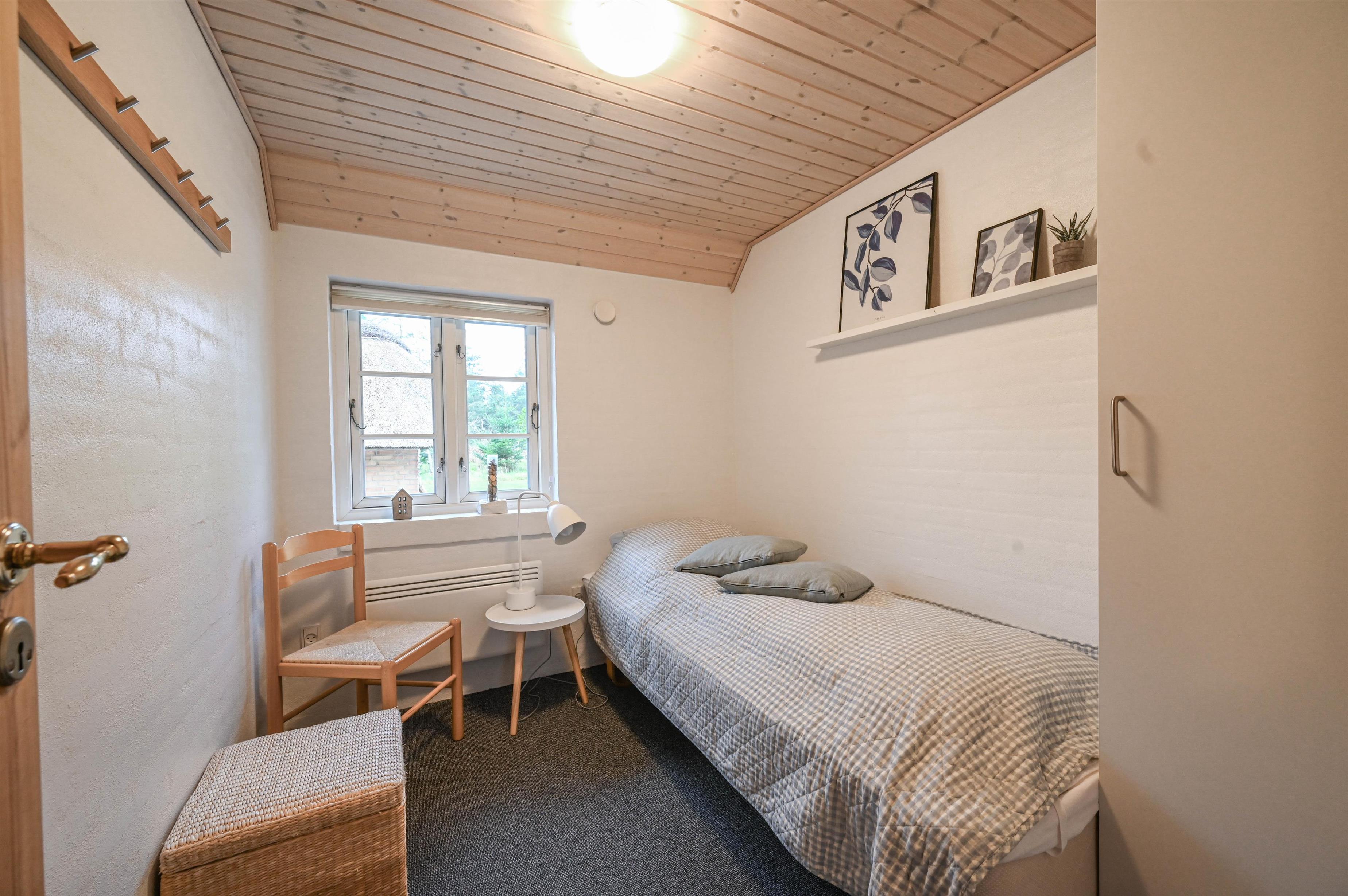 Entré med garderobe, et soveværelse med dobbeltseng og faste skabe, samt to værelser med hver en enkeltseng. Det flotte badeværelse byder på bruseniche, gulvvarme, vaskemaskine og tørretumbler.