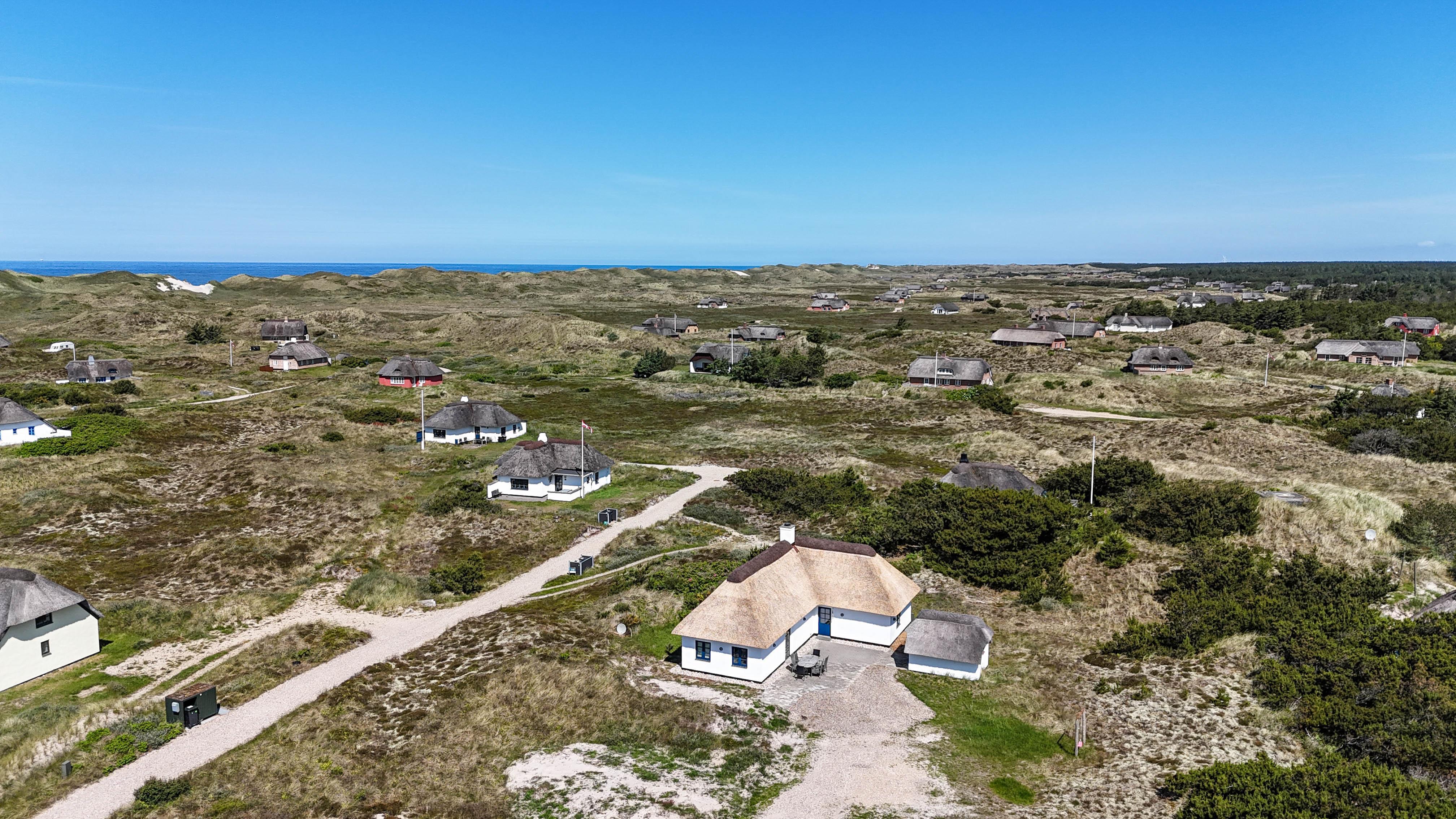 Her bor I fredeligt og naturskønt, kun 650 meter fra Vesterhavet og med klitterne som nærmeste nabo. Naturen er lige udenfor døren – perfekt til både morgenture i klitterne, lange dage ved stranden og hyggelige aftener på terrassen.