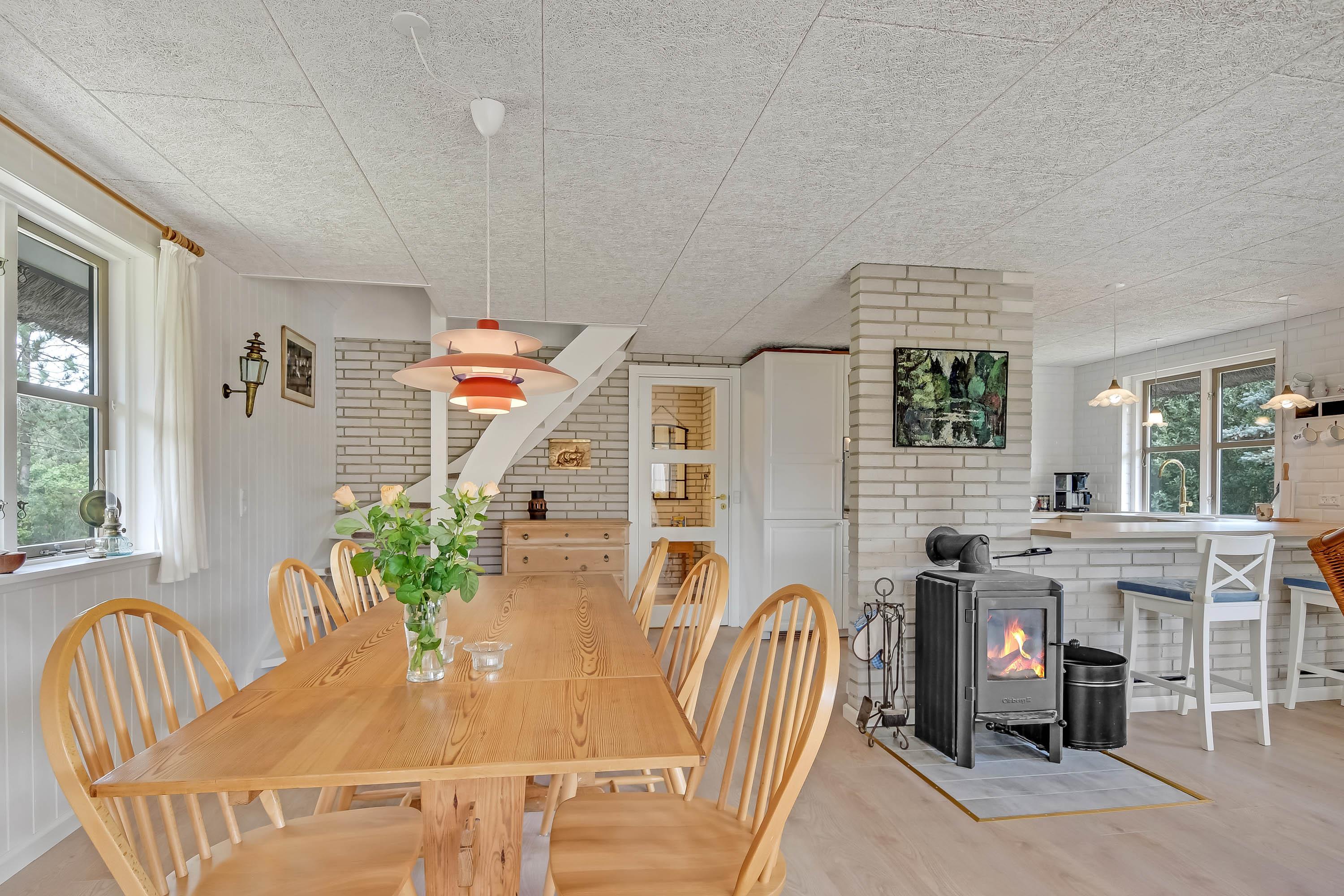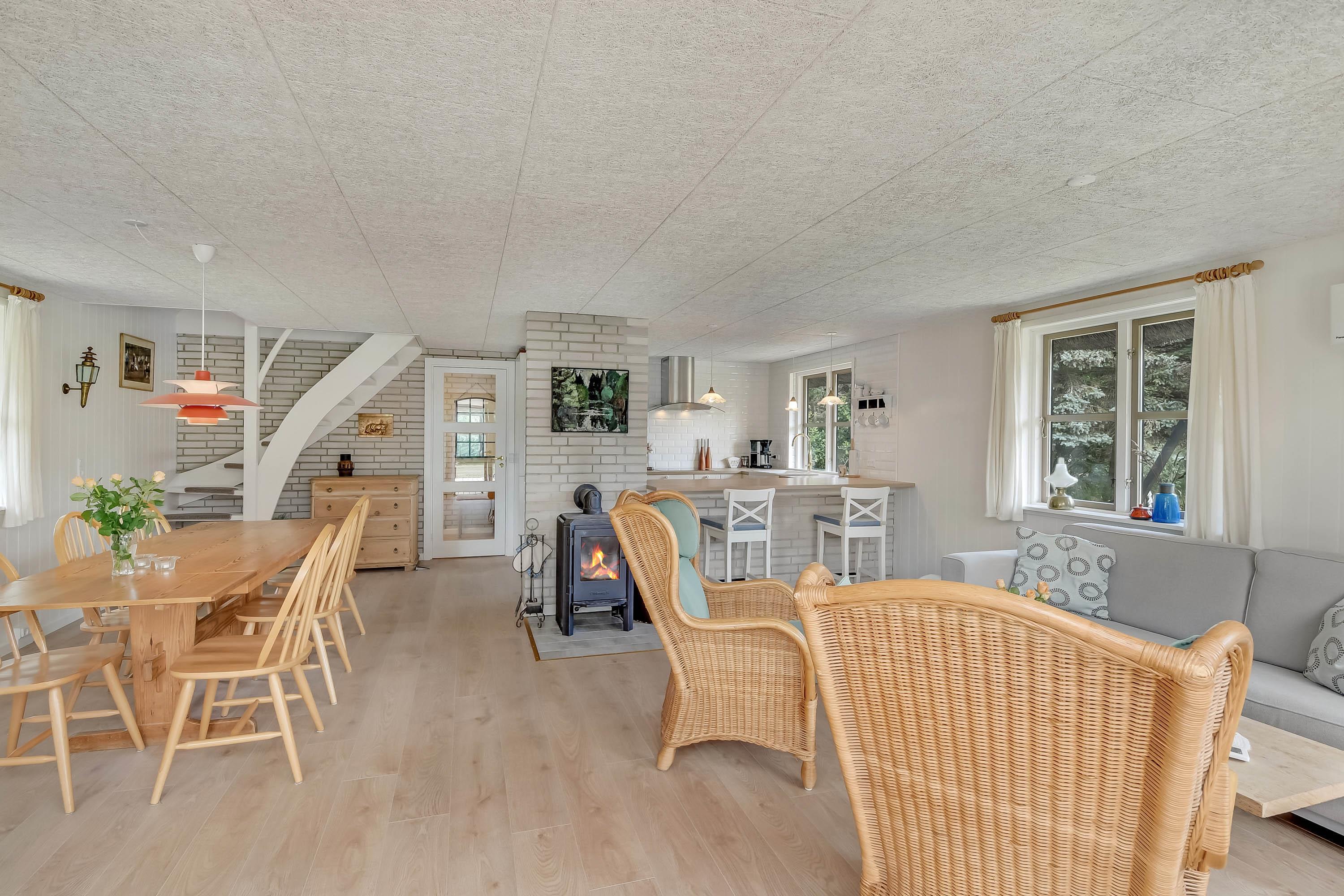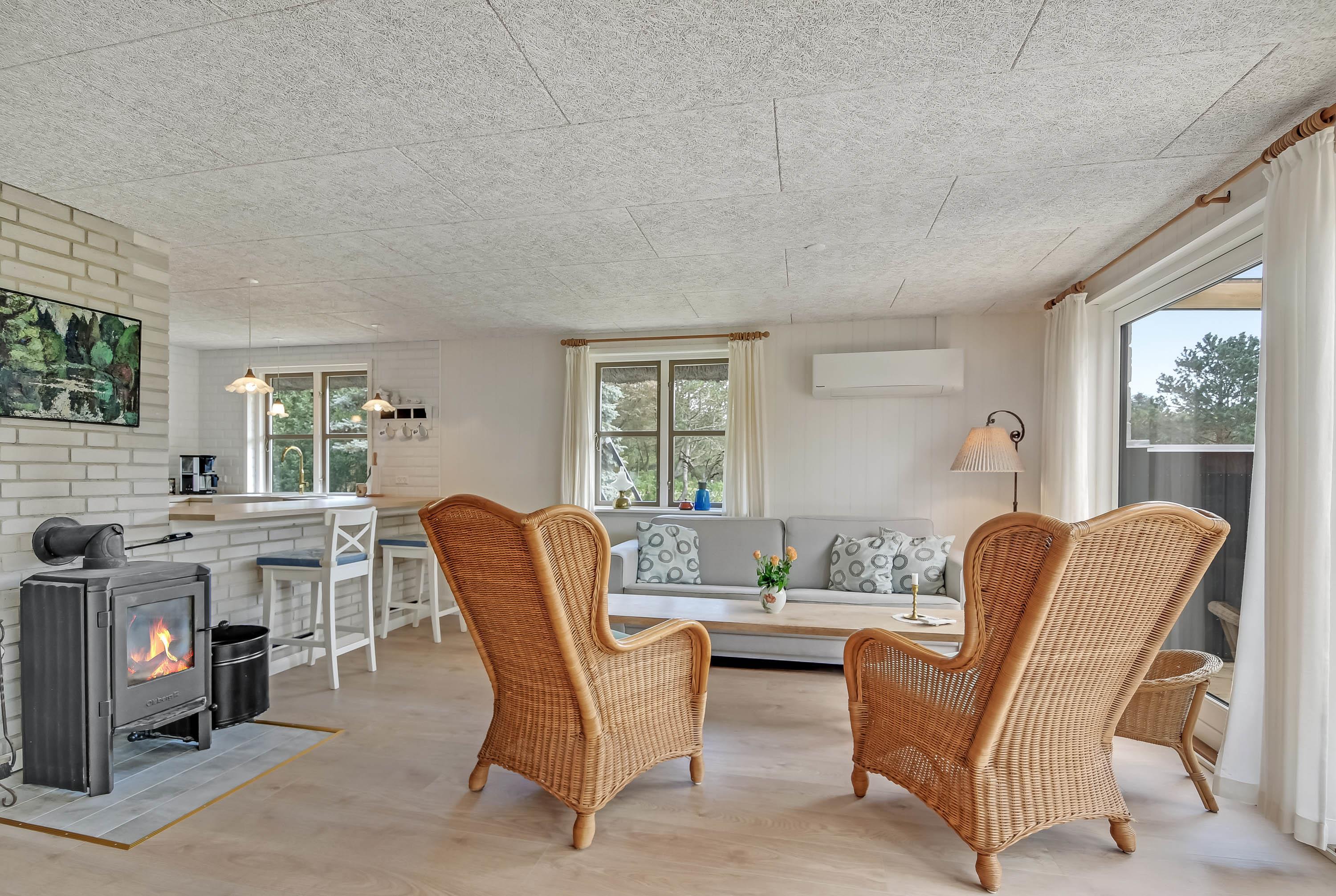 Når vinden rusker udenfor, og bølgerne buldrer i det fjerne, kan ferien nydes indenfor ved brændeovnen i den hyggelige stue – det perfekte sted at samles efter en dag ved havet.