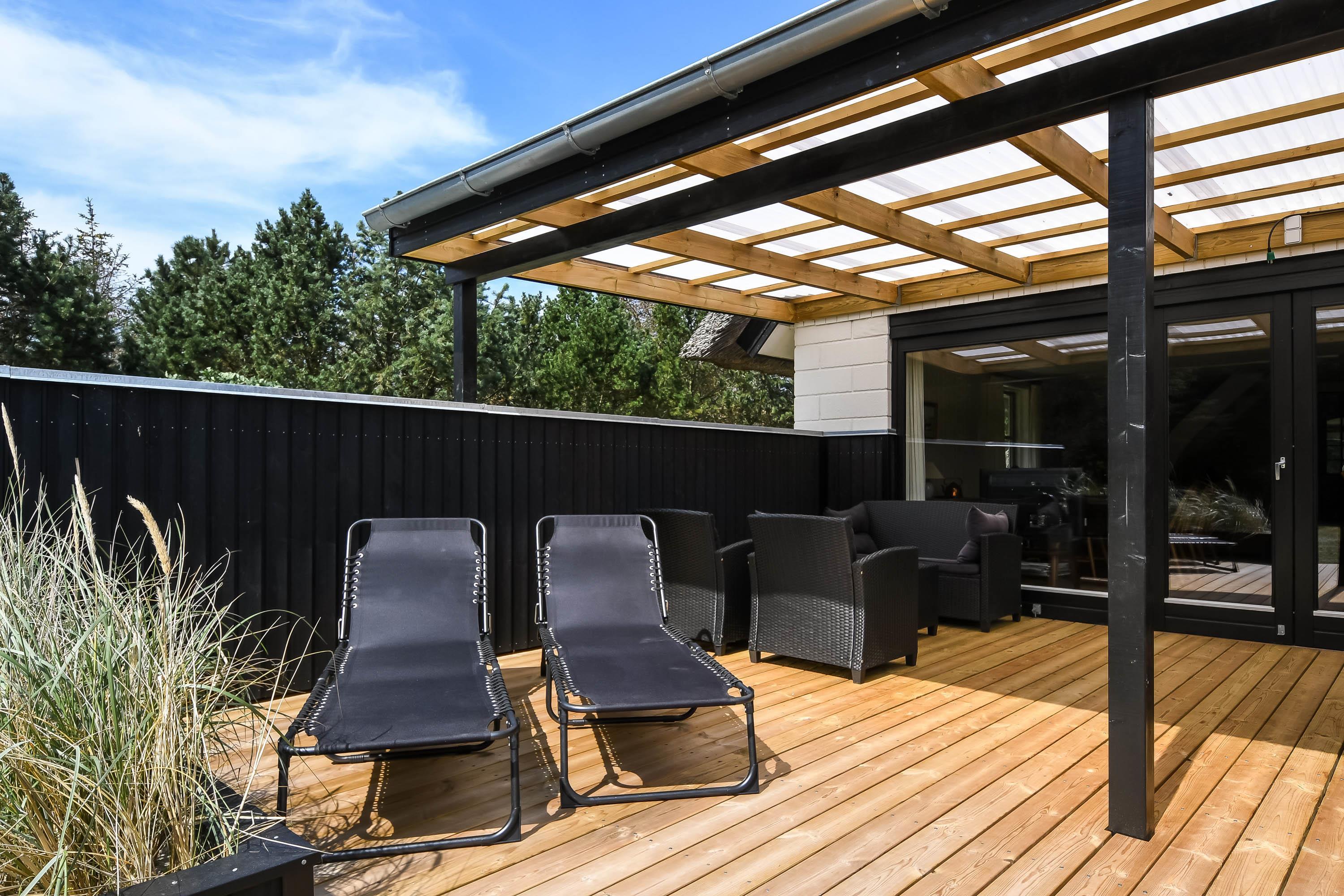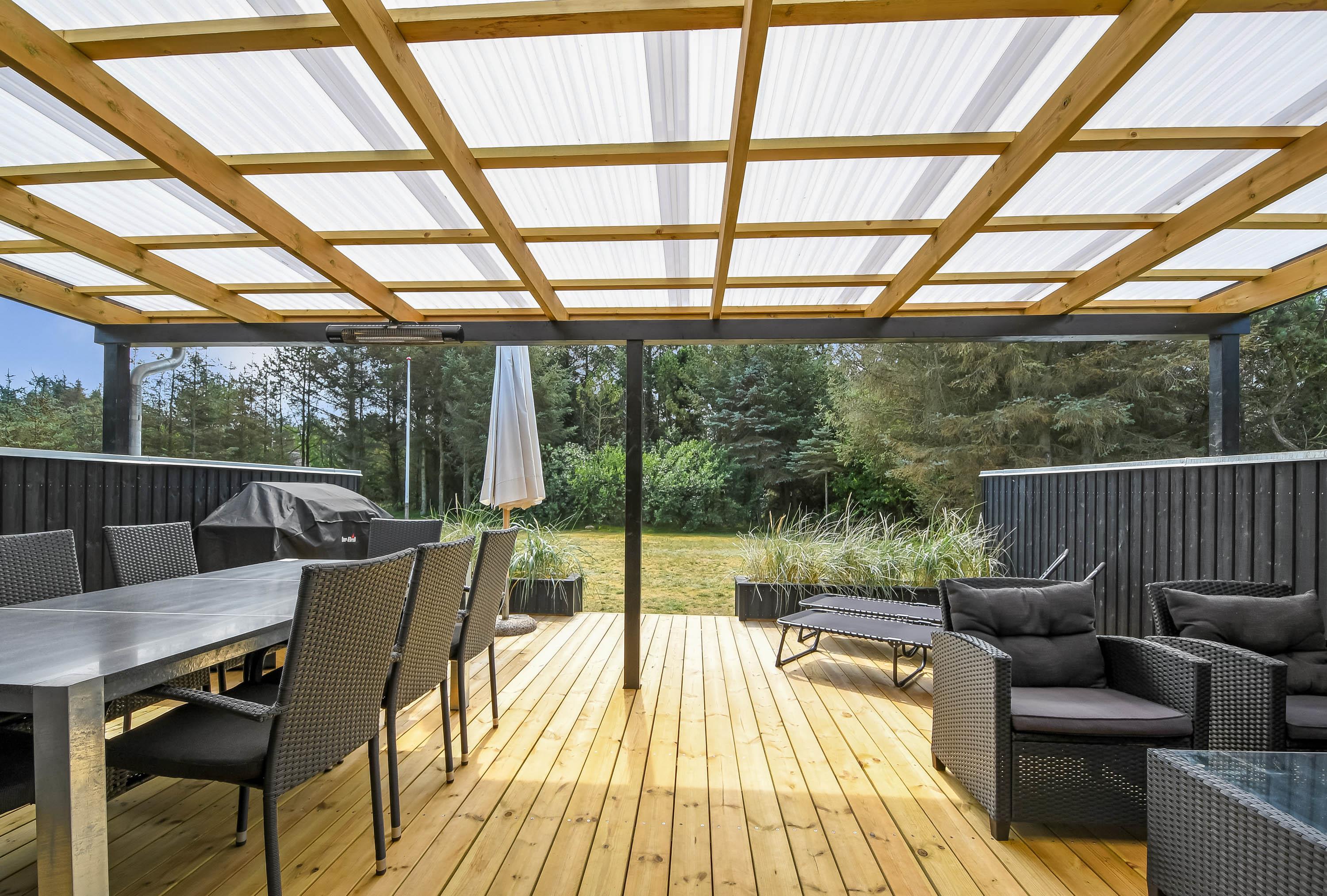 Den sydvendte terrasse indbyder til afslapning i solen, måltider under åben himmel og hyggelige grillaftener. Her kan I finde læ og nyde de lange, lyse sommeraftener – mens børnene leger på grunden omkring huset.
